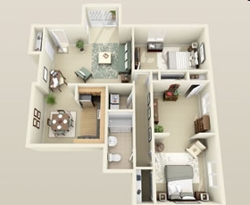 1 Dormitorio, 1 Baño, 750 pies²Disponible AhoraGalería del Modelo