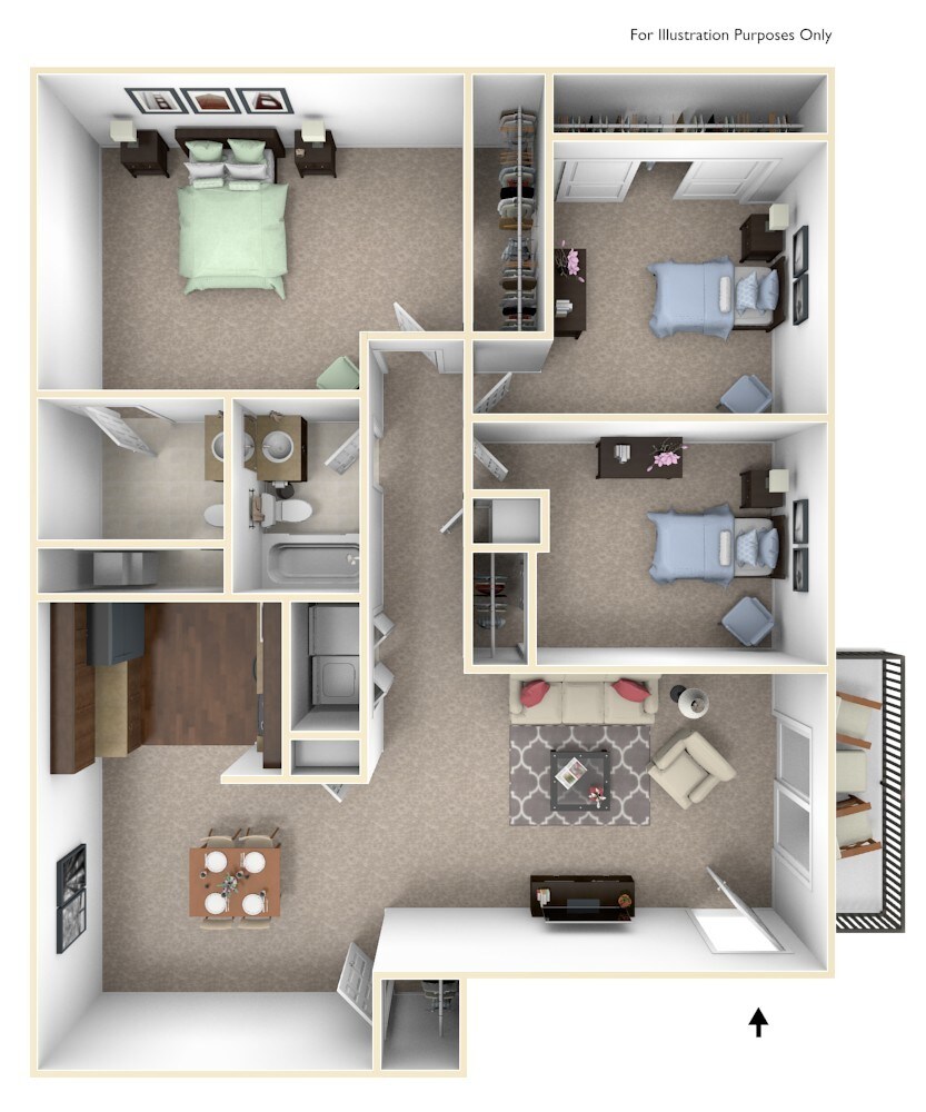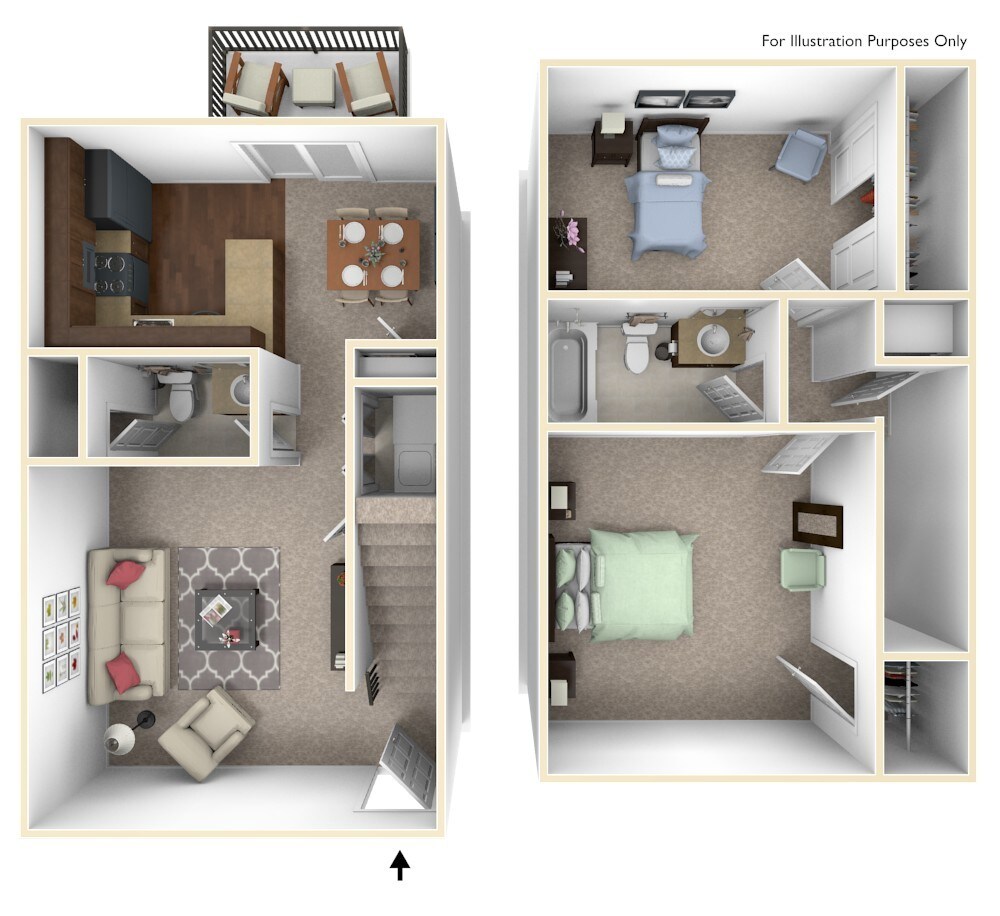 Modelo de apartamento: KirkwoodDesde $8992 Dormitorios, 1 Baño, 783 sq ftDisponible Ahora![]()