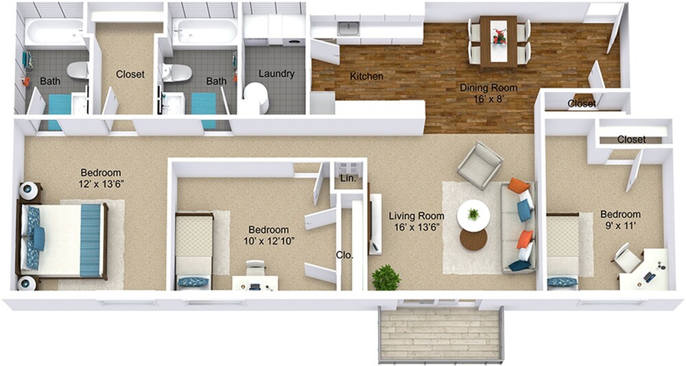 Modelo de apartamento: C4Desde $1,5292 Dormitorios, 2 Baños, 1091 sq ftDisponible November 24, 2025![]()