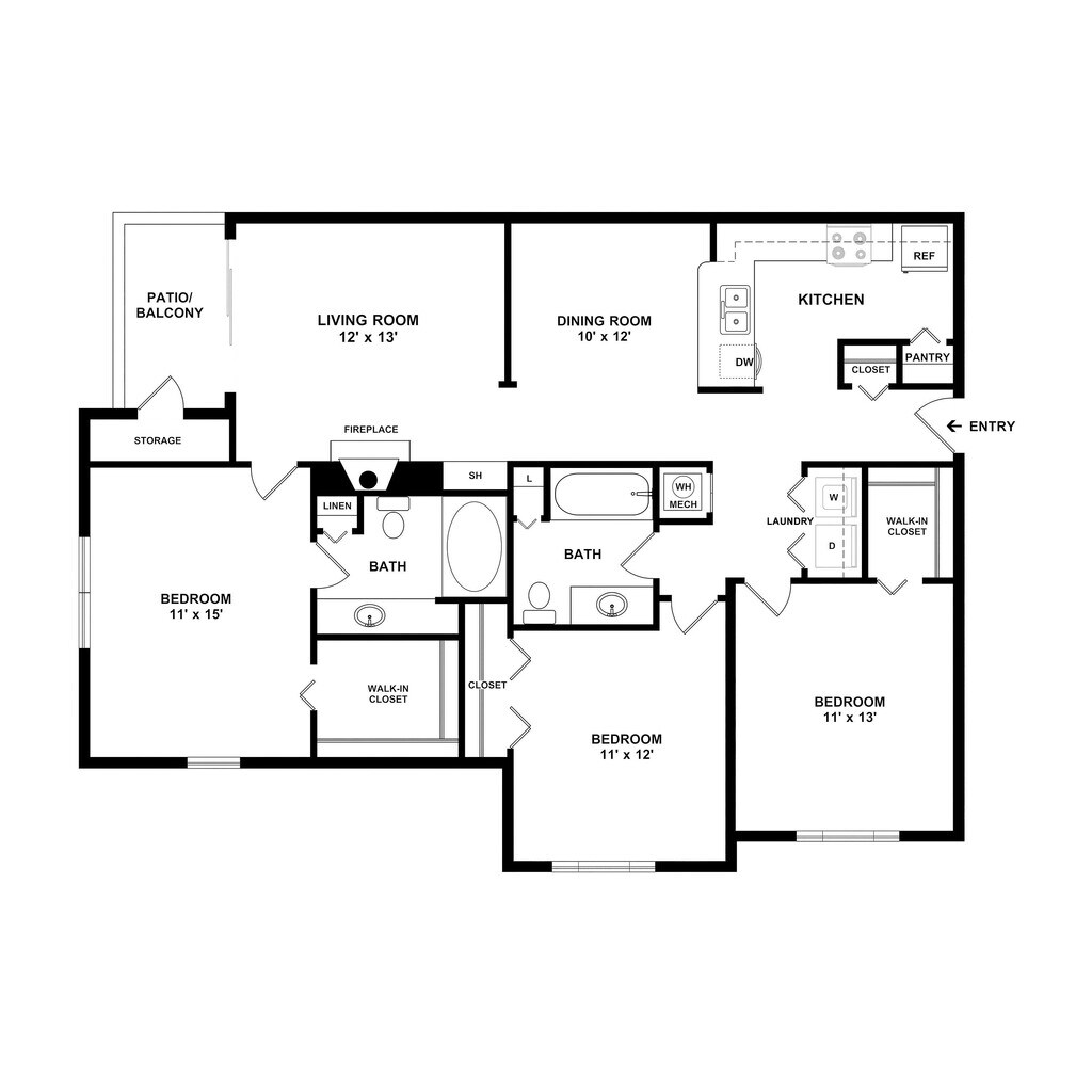 Modelo de apartamento: 1.1 D RiverviewLlame para Precios1 Dormitorio, 1 Baño, 731 sq ftNo Disponible![]()
