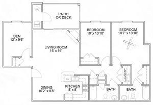 Modelo de apartamento: B1Desde $1,5432 Dormitorios, 2 Baños, 978 sq ftDisponible AhoraPlanosFotos![]()