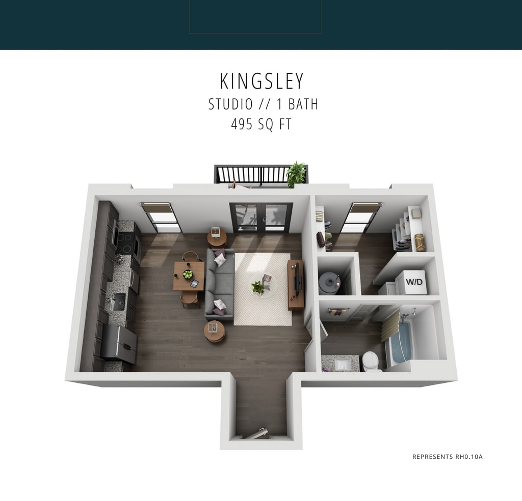 Modelo de apartamento: Kingsley$964Estudio, 1 Baño, 495 sq ftDisponible Ahora![]()