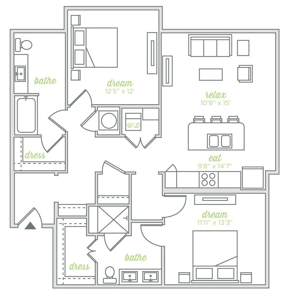 A6 - Plano 1 Unidad de apartamento: 206Modelo de apartamento: A6$1,8861 Dormitorio, 1 Baño, 946 sq ftDisponible December 9, 2025Plano: A2c