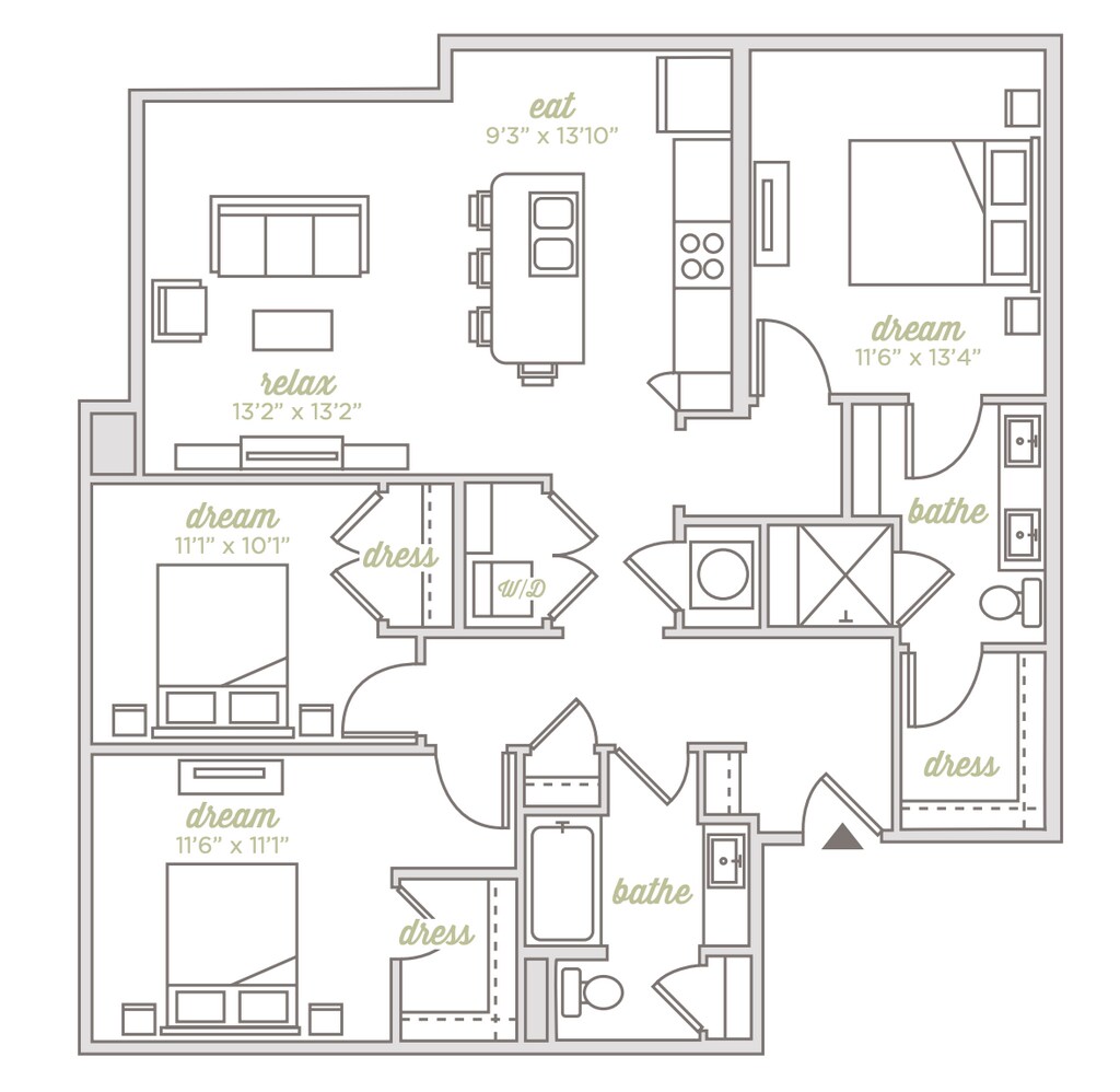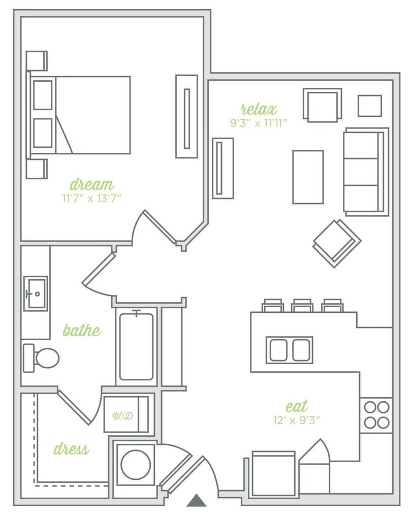 A3 - Plano 1 Unidad de apartamento: 344Modelo de apartamento: A3$1,8261 Dormitorio, 1 Baño, 813 sq ftDisponible AhoraPlano: A6