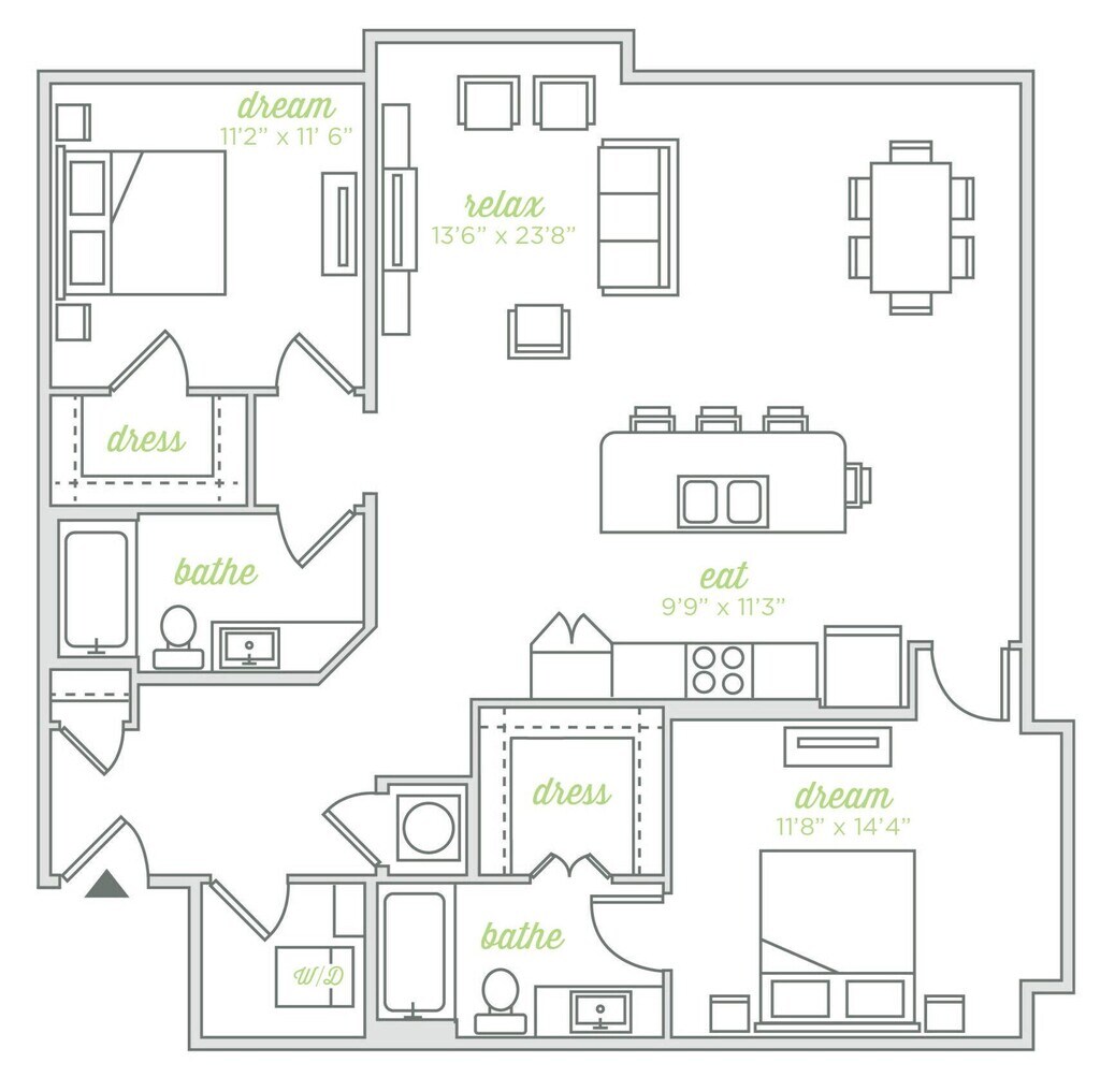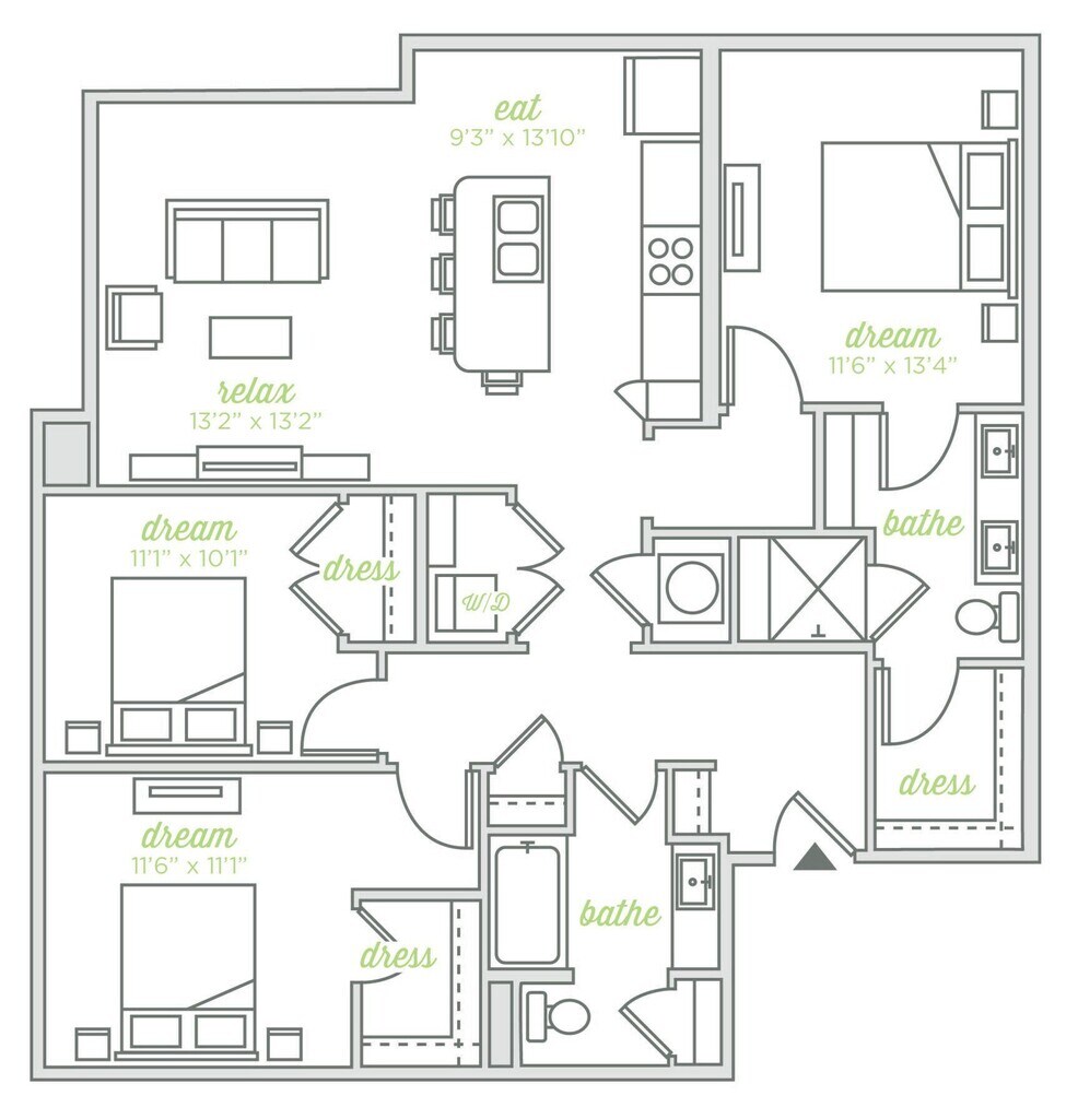 Modelo de apartamento: A3$1,8261 Dormitorio, 1 Baño, 813 sq ftDisponible AhoraLos planos de la planta son una interpretación artística. Todas las dimensiones son aproximadas. Los tamaños o el detalle del producto real y sus especificaciones pueden variar. No todas las características están disponibles en todos los hogares para rentar. Los precios y la disponibilidad están sujetos a cambios. El alquiler que se muestra es mensual. Se pueden aplicar ciertos cargos, por ejemplo, entrega de paquetes, recolección de basura, agua, servicios, etc. Depositos varian. Consulta a un representante para conocer detalles.