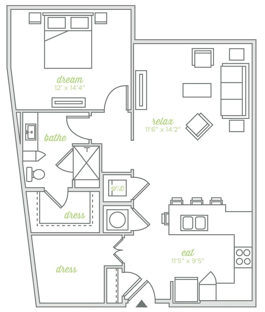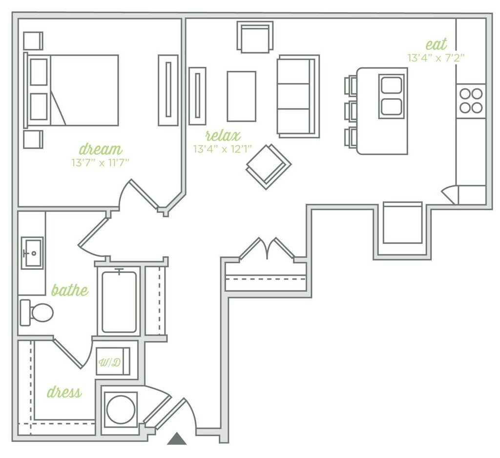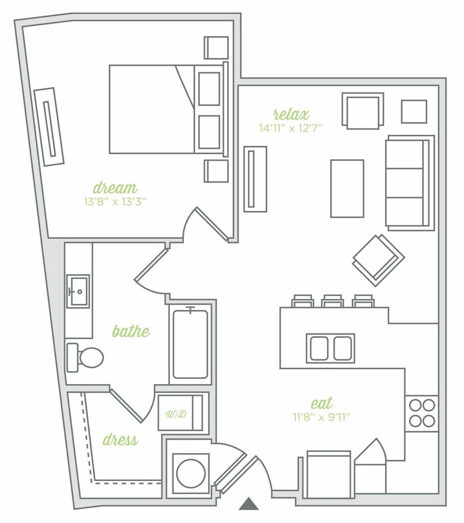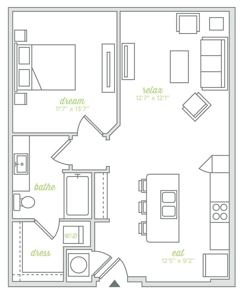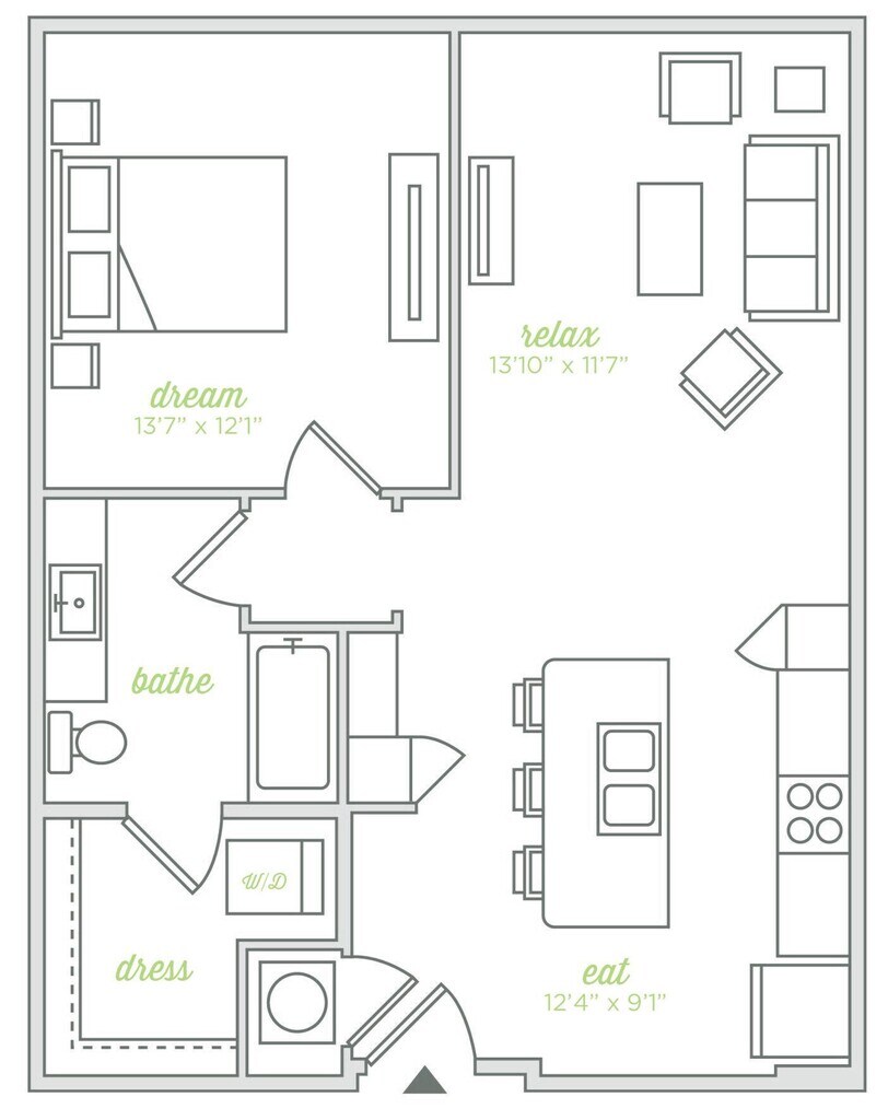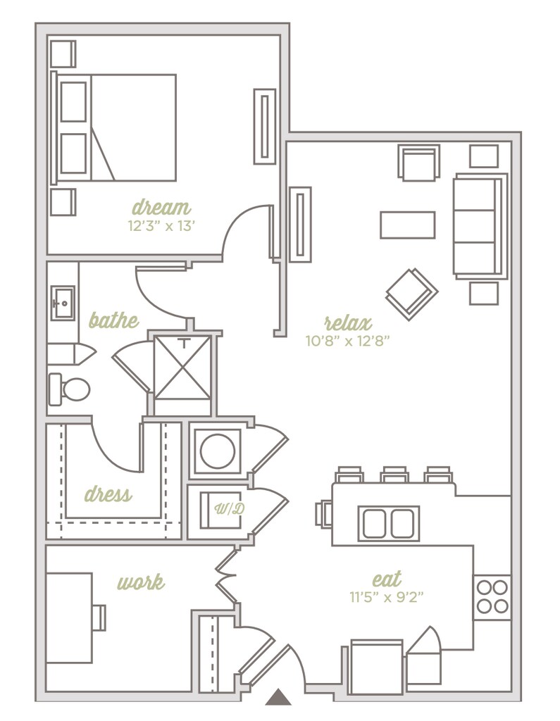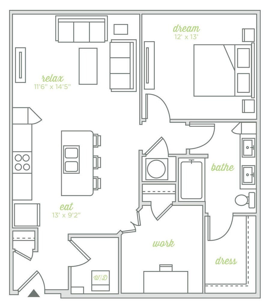 1 Dormitorio, 1 Baño, 813 pies²Disponible AhoraGalería del Modelo