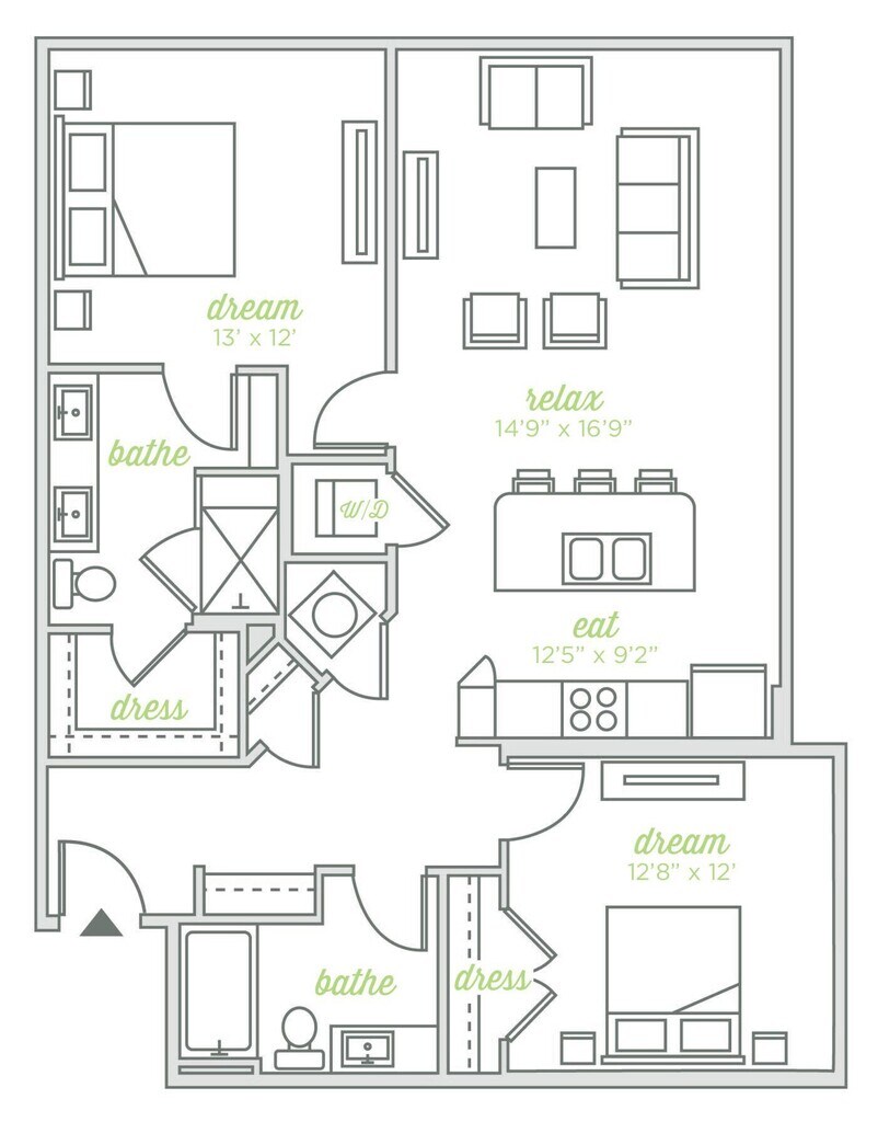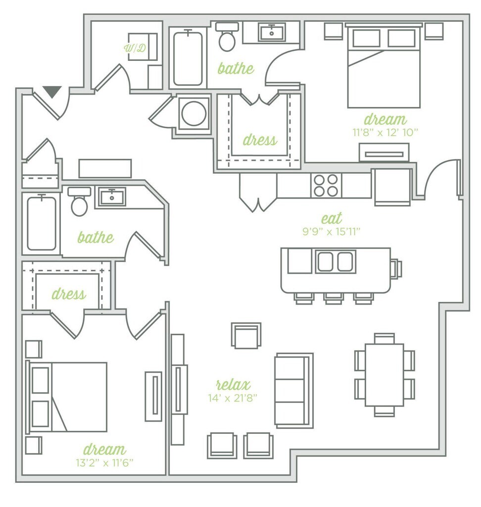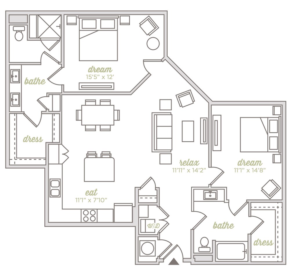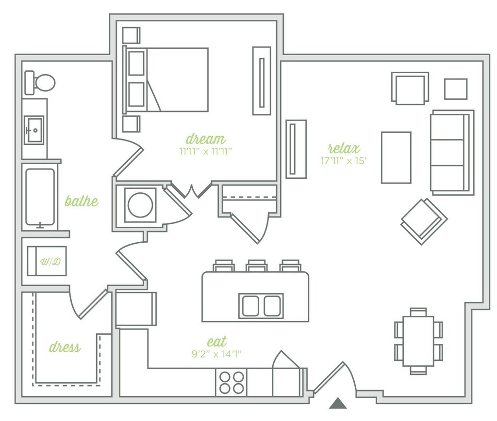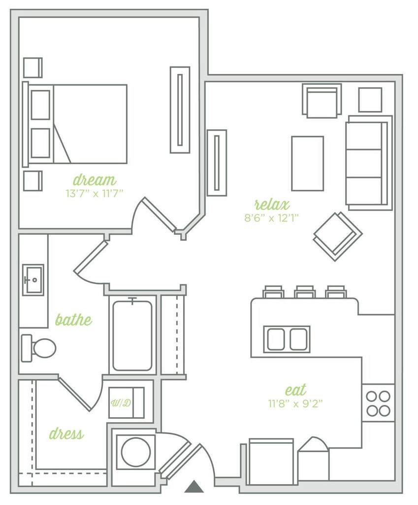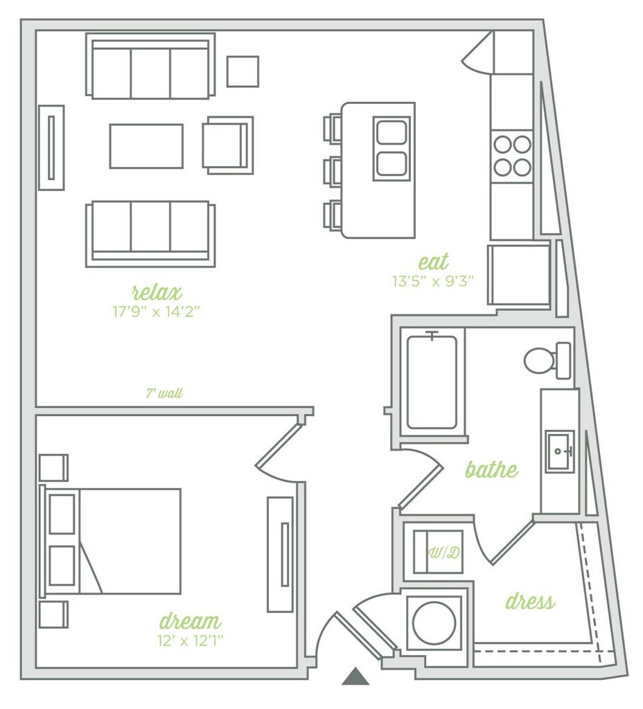 1 Dormitorio, 1 Baño, 813 pies²Disponible AhoraGalería del Modelo