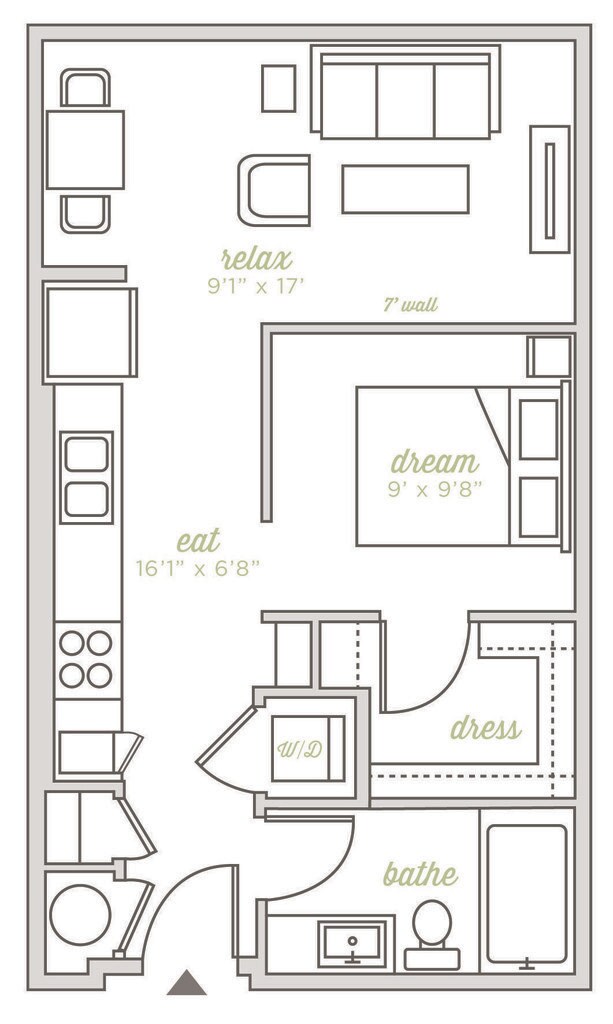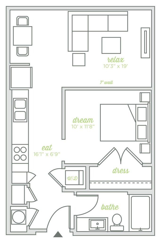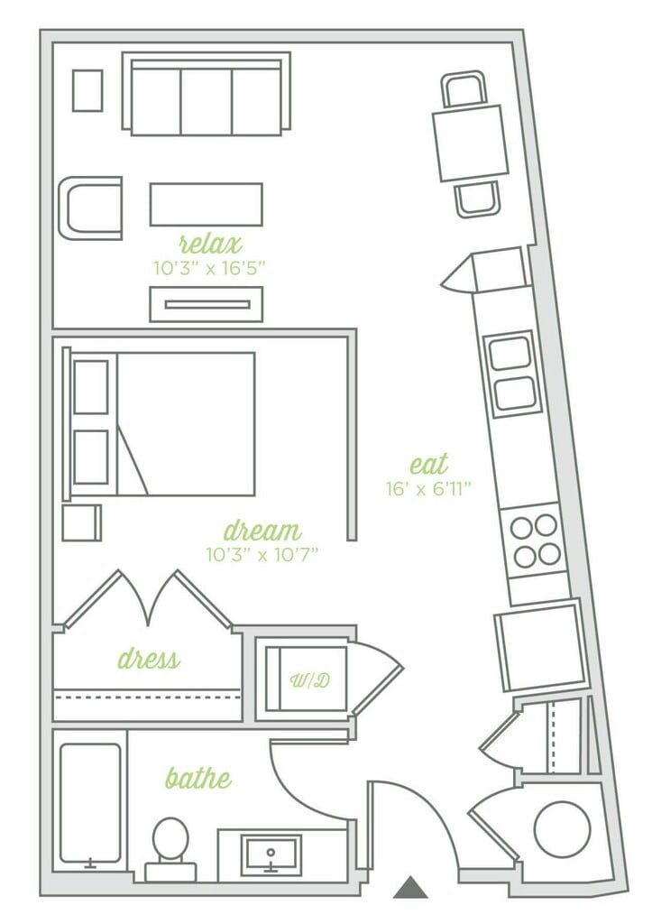 Modelo de apartamento: S1Desde $1,432Estudio, 1 Baño, 555 sq ftDisponible AhoraLos planos de la planta son una interpretación artística. Todas las dimensiones son aproximadas. Los tamaños o el detalle del producto real y sus especificaciones pueden variar. No todas las características están disponibles en todos los hogares para rentar. Los precios y la disponibilidad están sujetos a cambios. El alquiler que se muestra es mensual. Se pueden aplicar ciertos cargos, por ejemplo, entrega de paquetes, recolección de basura, agua, servicios, etc. Depositos varian. Consulta a un representante para conocer detalles.