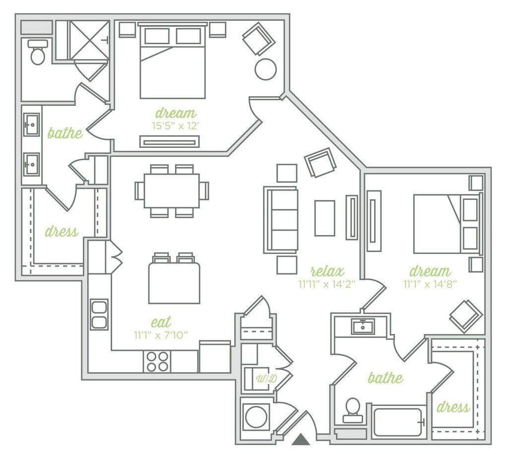 Modelo de apartamento: A6$1,8861 Dormitorio, 1 Baño, 946 sq ftDisponible December 9, 2025Los planos de la planta son una interpretación artística. Todas las dimensiones son aproximadas. Los tamaños o el detalle del producto real y sus especificaciones pueden variar. No todas las características están disponibles en todos los hogares para rentar. Los precios y la disponibilidad están sujetos a cambios. El alquiler que se muestra es mensual. Se pueden aplicar ciertos cargos, por ejemplo, entrega de paquetes, recolección de basura, agua, servicios, etc. Depositos varian. Consulta a un representante para conocer detalles.
