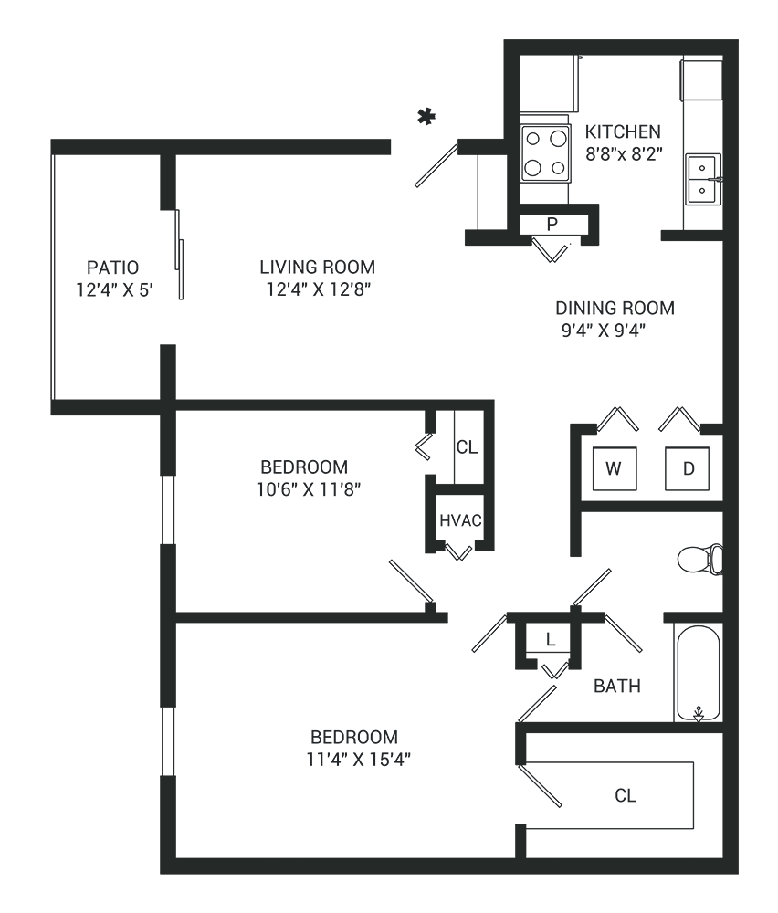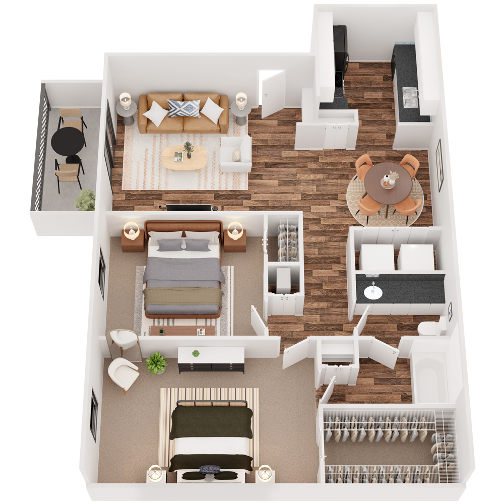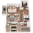 2 Dormitorios, 1 Baño, 857 pies²Disponible AhoraGalería del Modelo