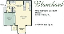 The Blanchard - Patio - Plano 1 Unidad de apartamento: 0234Modelo de apartamento: The Blanchard - Patio$2,5051 Dormitorio, 1 Baño, 738 sq ftDisponible January 16, 2026The Blanchard - Solarium