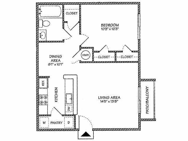 Modelo de apartamento: 1x11 Dormitorio, 1 Baño, 660 sq ftNo Disponible![]()