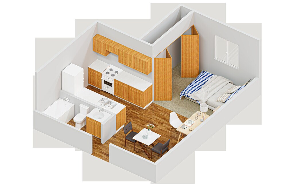 Studio, 1 bath