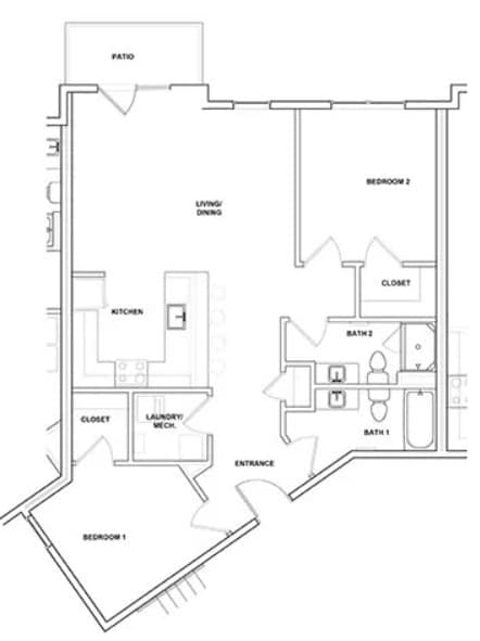 Modelo de apartamento: 2/2Desde $1,6122 Dormitorios, 2 Baños, 1047-1216 sq ftDisponible Ahora![]()