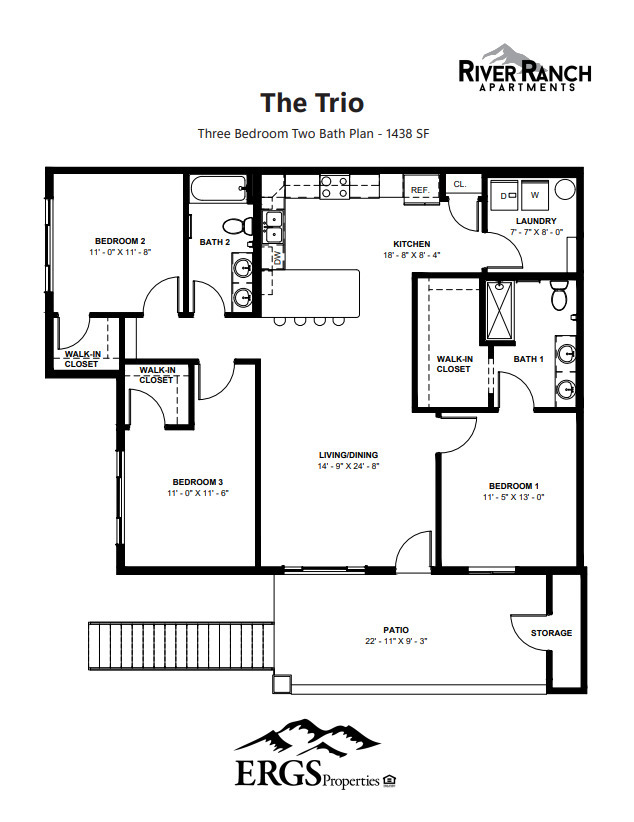 Modelo de apartamento: The Trio$2,3493 Dormitorios, 2 Baños, 1438 sq ftDisponible February 6, 2026The Trio - Plano 1