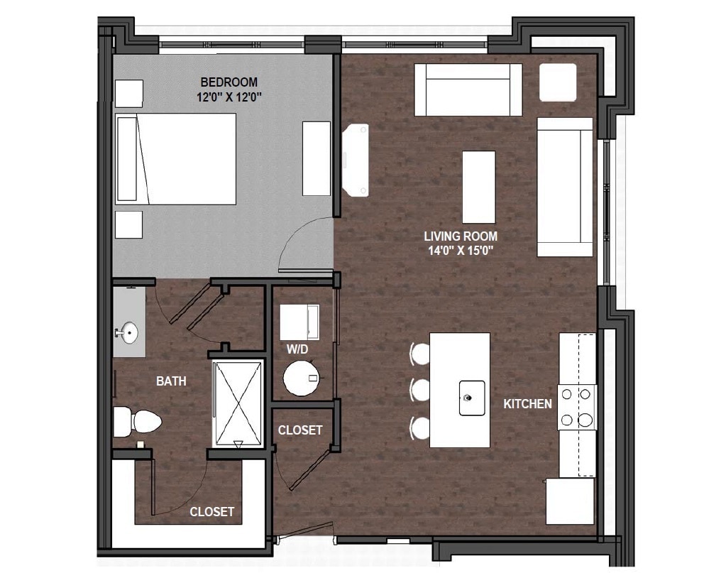 Modelo de apartamento: Chapel 1Llame para Precios1 Dormitorio, 1 Baño, 679 sq ftNo Disponible![]()