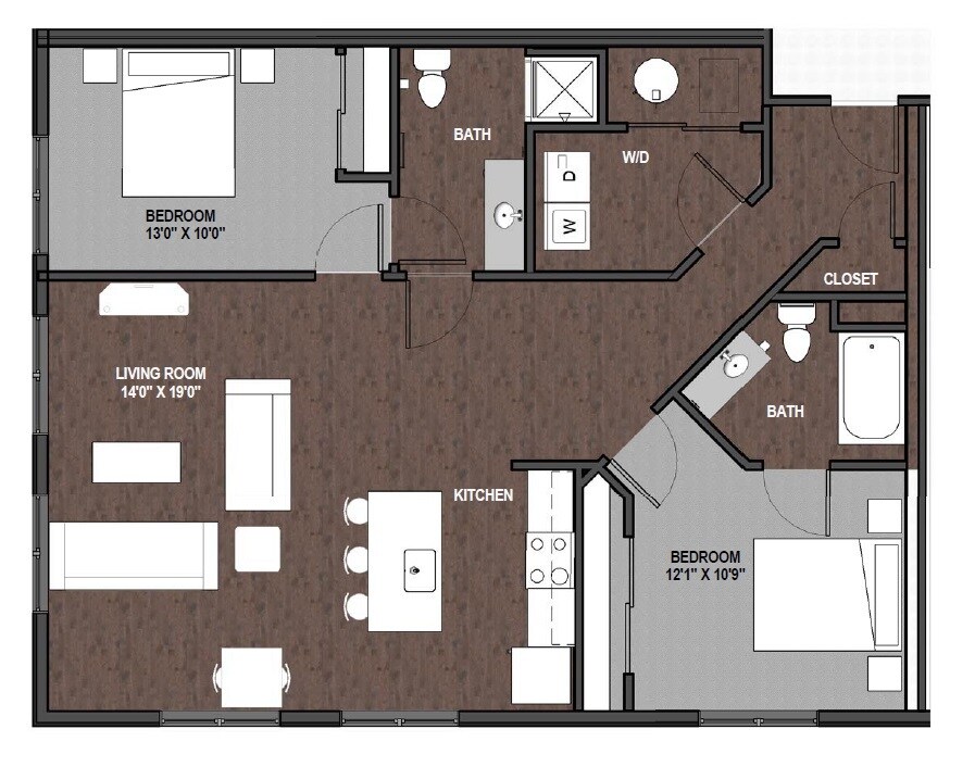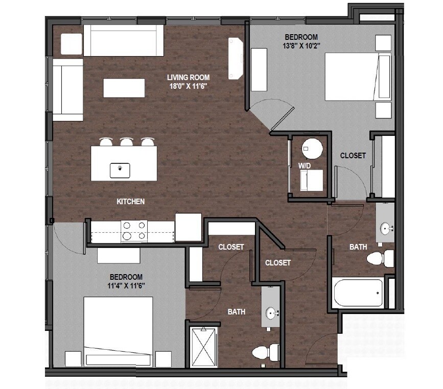 1 Dormitorio, 1 Baño, 994 pies²El más grandeEsta opción tiene las unidades más grandes para este modeloGalería del Modelo