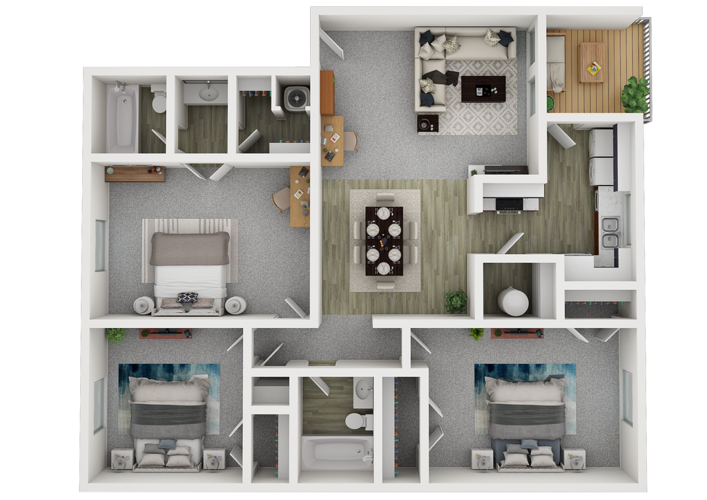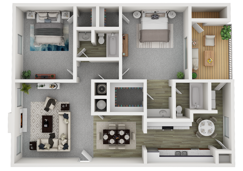 Modelo de apartamento: CedarDesde $1,7493 Dormitorios, 2 Baños, 1280 sq ftDisponible Ahora![]()