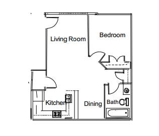 Modelo de apartamento: 1 Bedroom1 Dormitorio, 1 Baño, 750 sq ftNo Disponible![]()