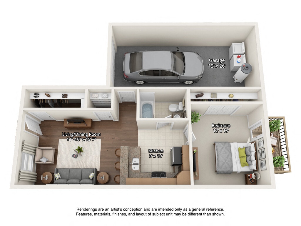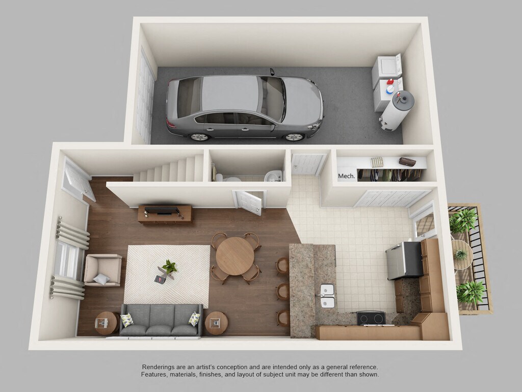 1 Bedroom Townhome - Plano 1 1 Bedroom Townhome with Main Level Garage