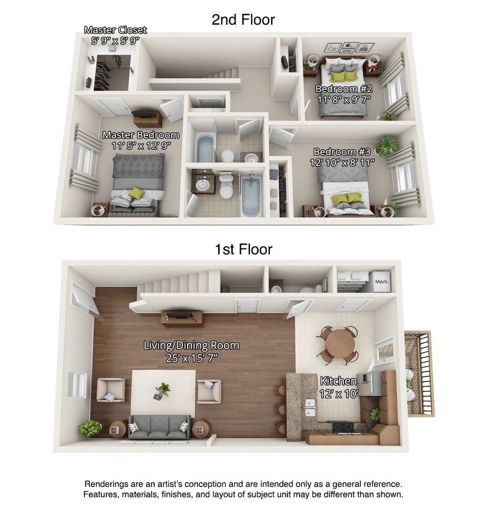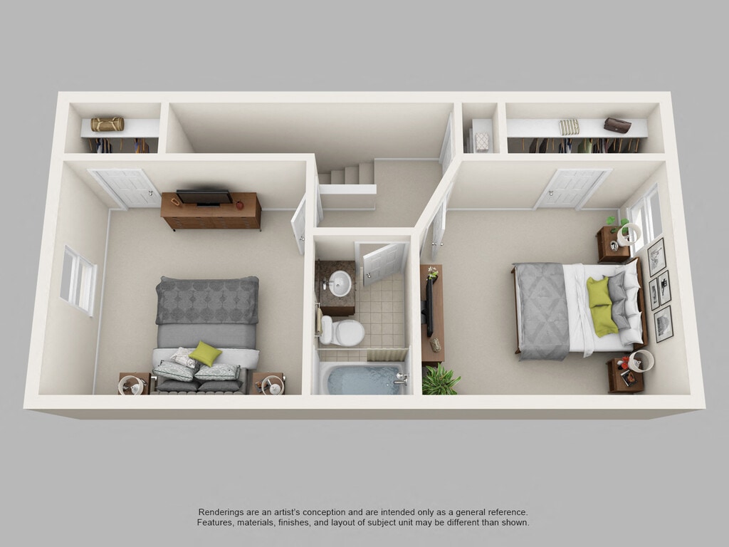 Modelo de apartamento: 1 Bedroom Second LevelDesde $9291 Dormitorio, 1 Baño, 680 sq ftDisponible Ahora![]()