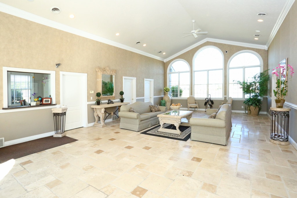 July 29, 2015Beautiful walk out patio to refreshing fountain in pond surrounded by trees and green grass with rock cluster lining. Spacious two bedroom two bath with utility room and washer and dryer included and efficiency kitchen. Serene setting like being in your own private beach bungalow looking out over the water. There is also a swimming pool and small work-out room available. Friendly staff and ease of access add to the total package.Reseña de Apartments.com