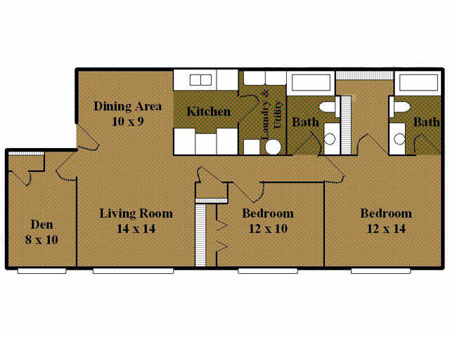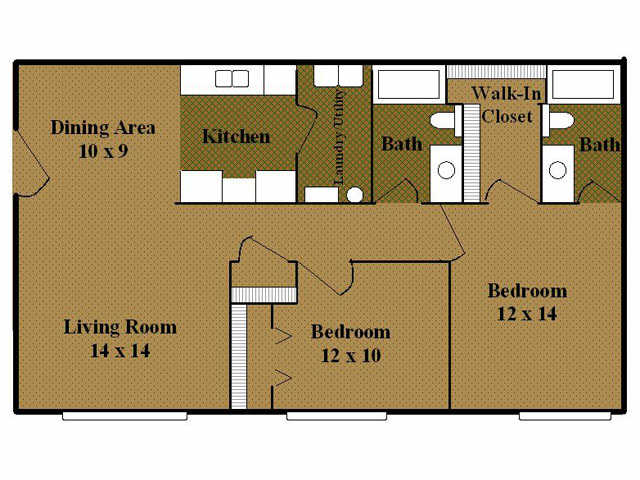 Modelo de apartamento: Two BedroomDesde $1,0602 Dormitorios, 2 Baños, 1008-1068 sq ftNo DisponibleTwo Bedroom - Plano 1 3 Dormitorios