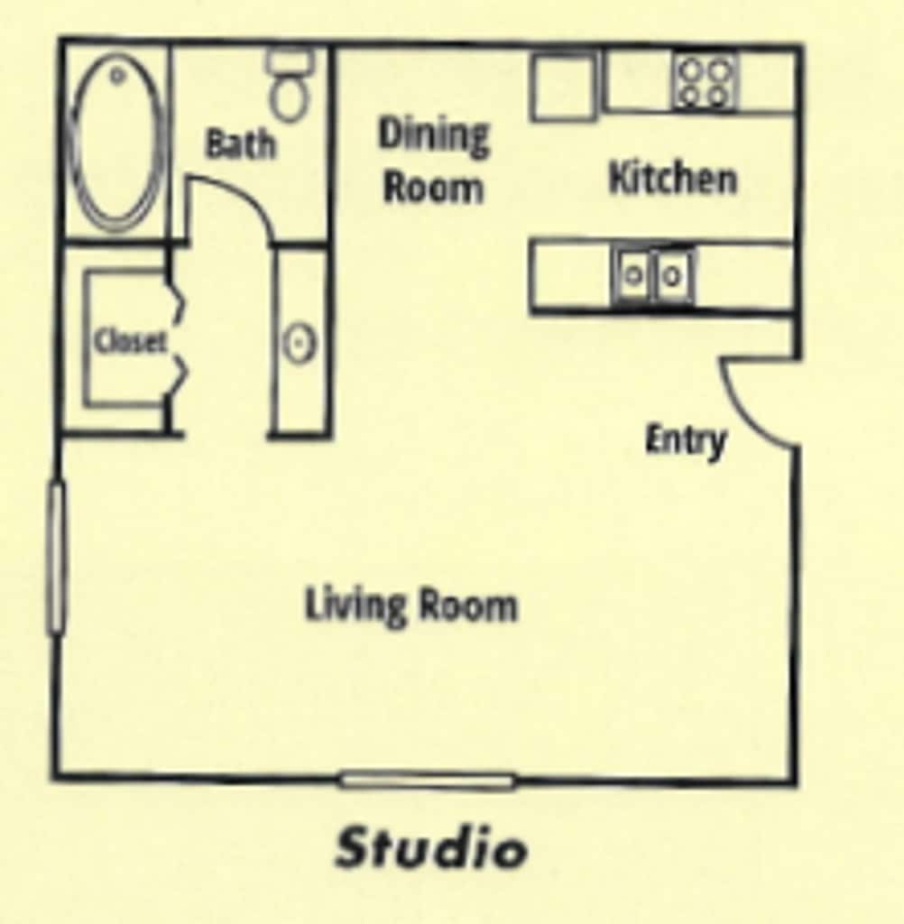 Studio - Imagen 9 Los planos son representaciones artísticas. Todas las dimensiones son aproximadas. El producto y las especificaciones reales pueden variar en tamaño o detalle. No todas las características están disponibles en cada vivienda en alquiler. Por favor, consulta con un representante para obtener más detalles.