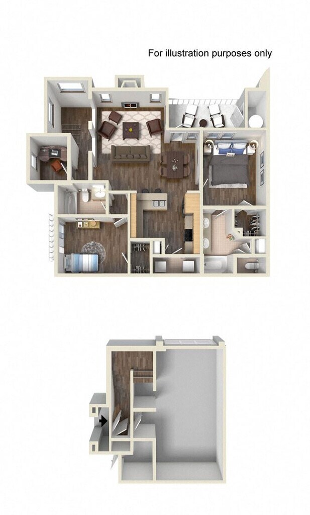 Residence Two Upper - Plano 2 Los planos de la planta son una interpretación artística. Todas las dimensiones son aproximadas. Los tamaños o el detalle del producto real y sus especificaciones pueden variar. No todas las características están disponibles en todos los hogares para rentar. Los precios y la disponibilidad están sujetos a cambios. El alquiler que se muestra es mensual. Se pueden aplicar ciertos cargos, por ejemplo, entrega de paquetes, recolección de basura, agua, servicios, etc. Depositos varian. Consulta a un representante para conocer detalles.