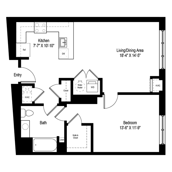 Modelo de apartamento: A5Llame para Precios1 Dormitorio, 1 Baño, sq ftNo Disponible![]()