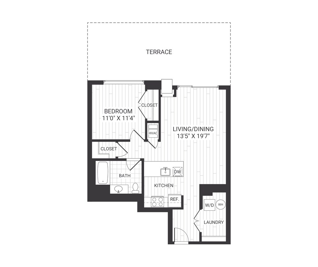 A8 - Plano 1 Unidad de apartamento: RT-0510Modelo de apartamento: A8$3,5471 Dormitorio, 1 Baño, 815 sq ftDisponible AhoraPlano: A1