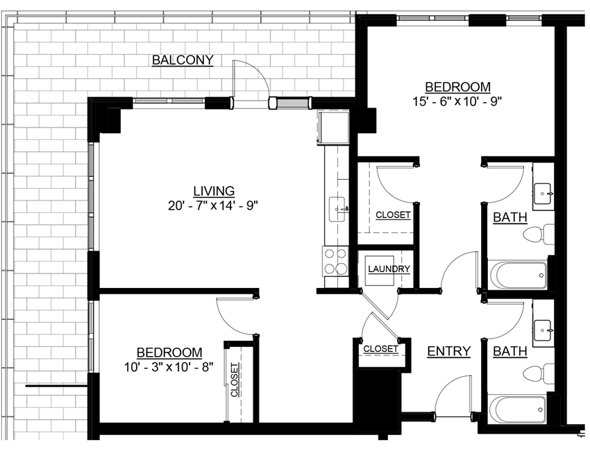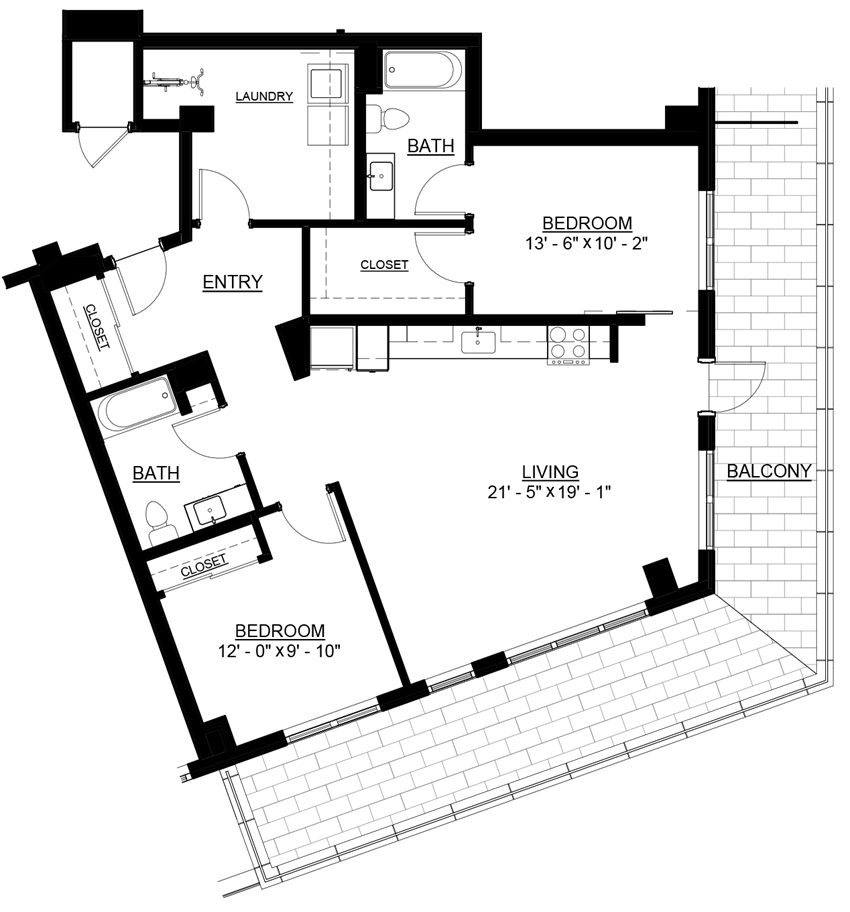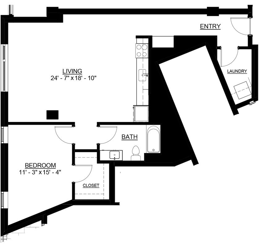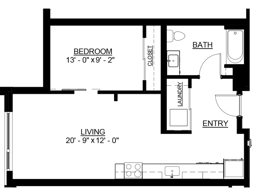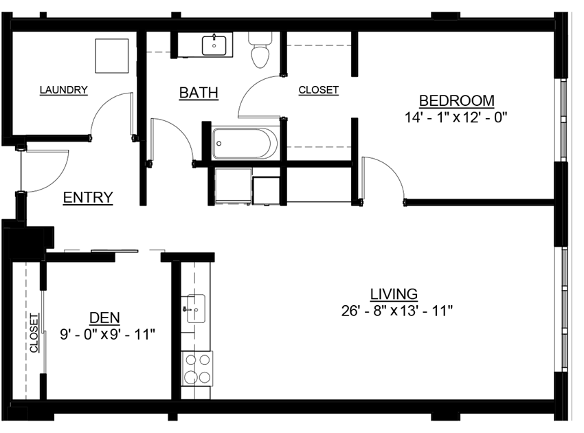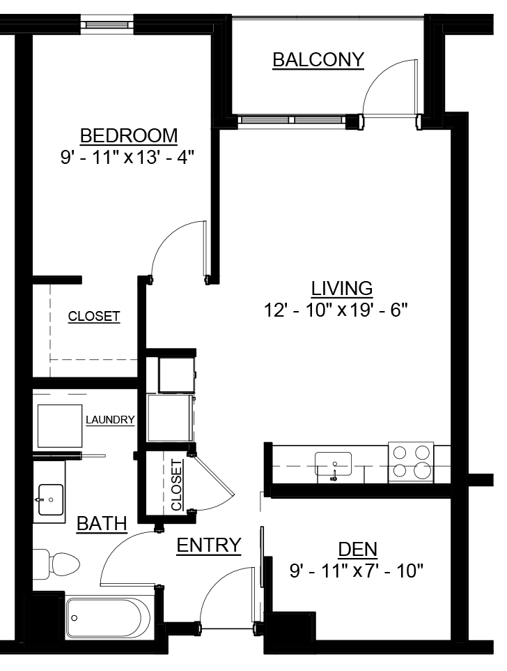 1 Dormitorio, 1 Baño, 900 pies²Disponible AhoraGalería del Modelo