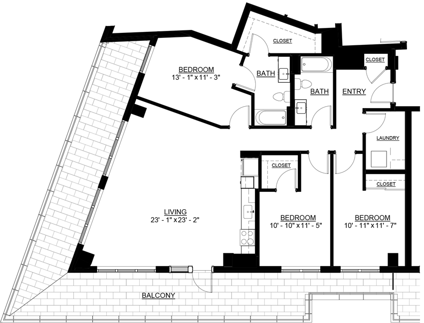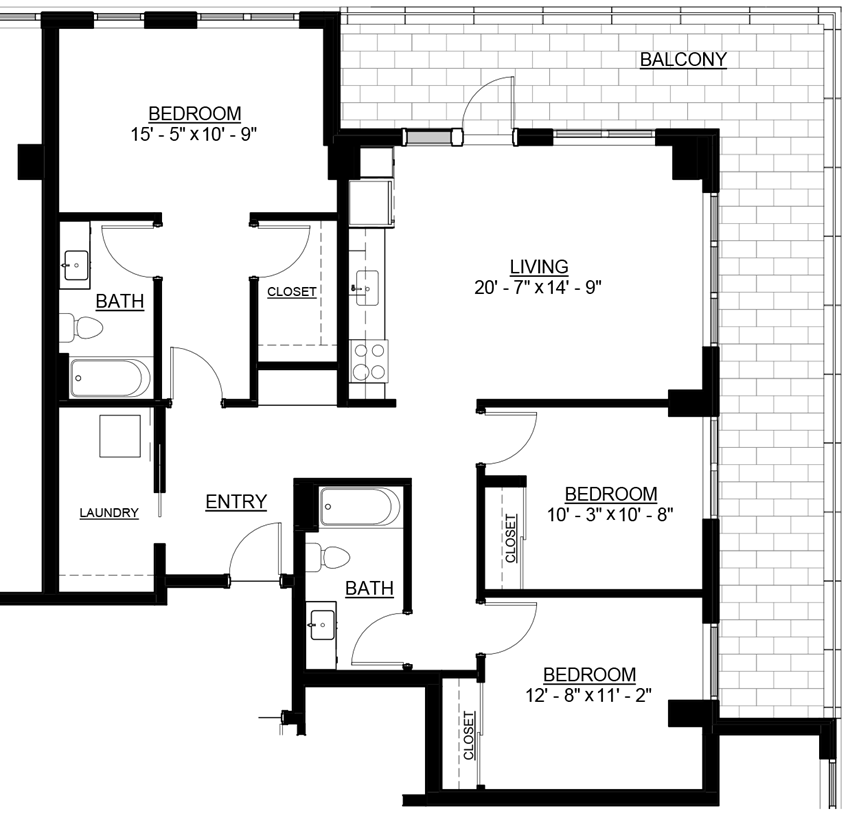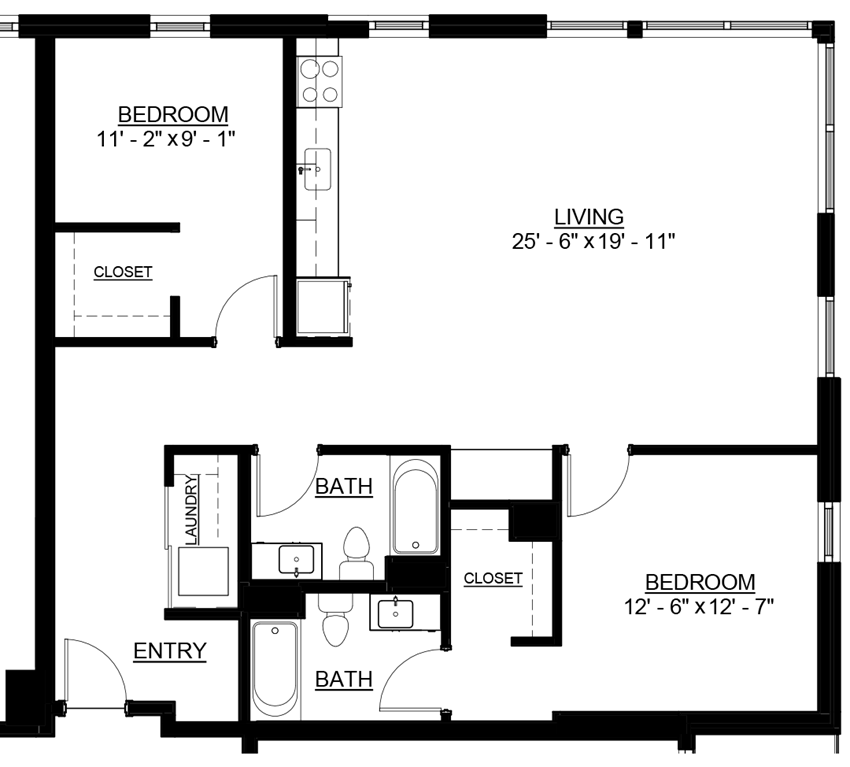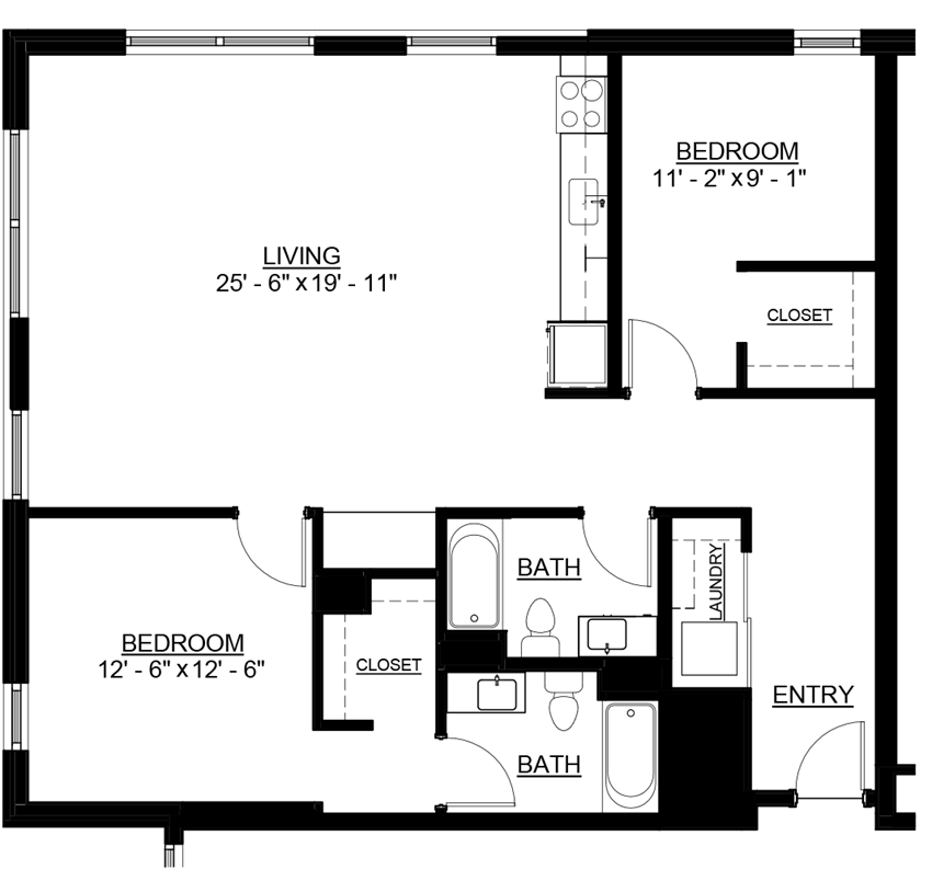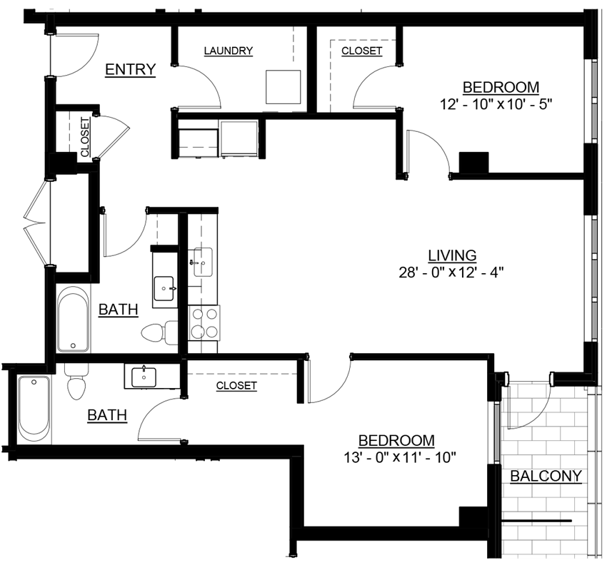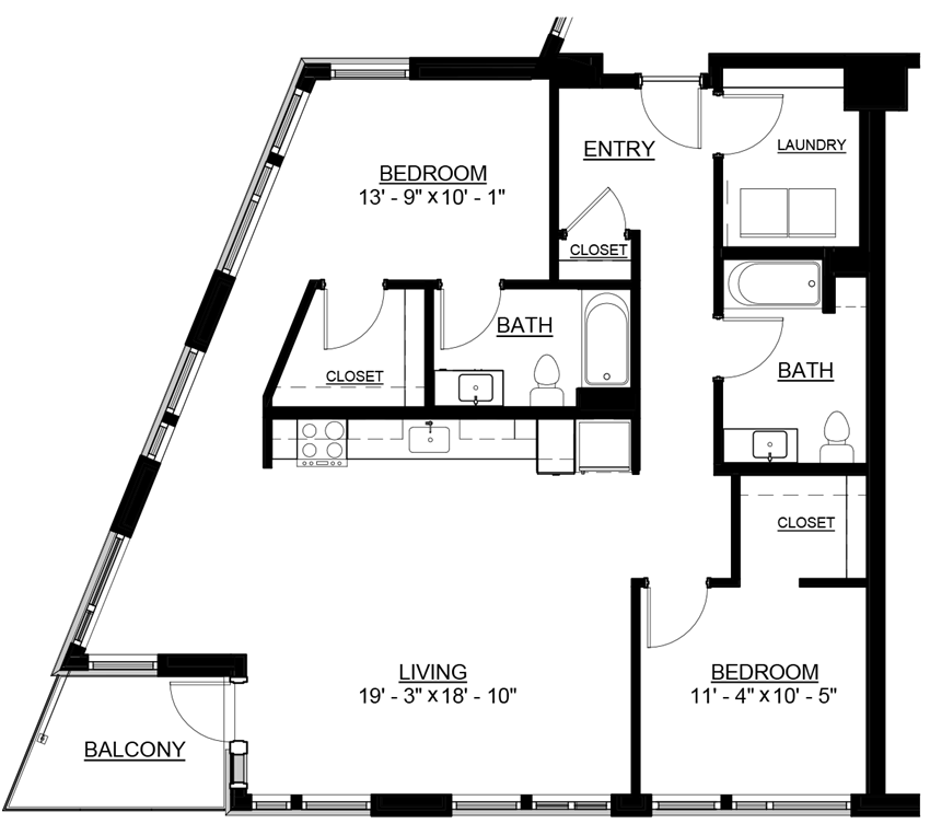 1 Dormitorio, 1 Baño, 900 pies²Disponible AhoraGalería del Modelo