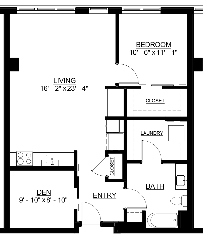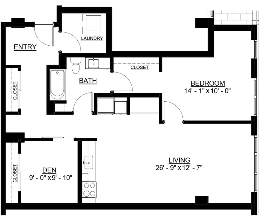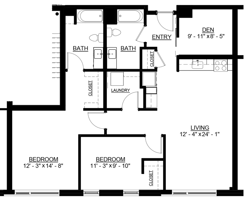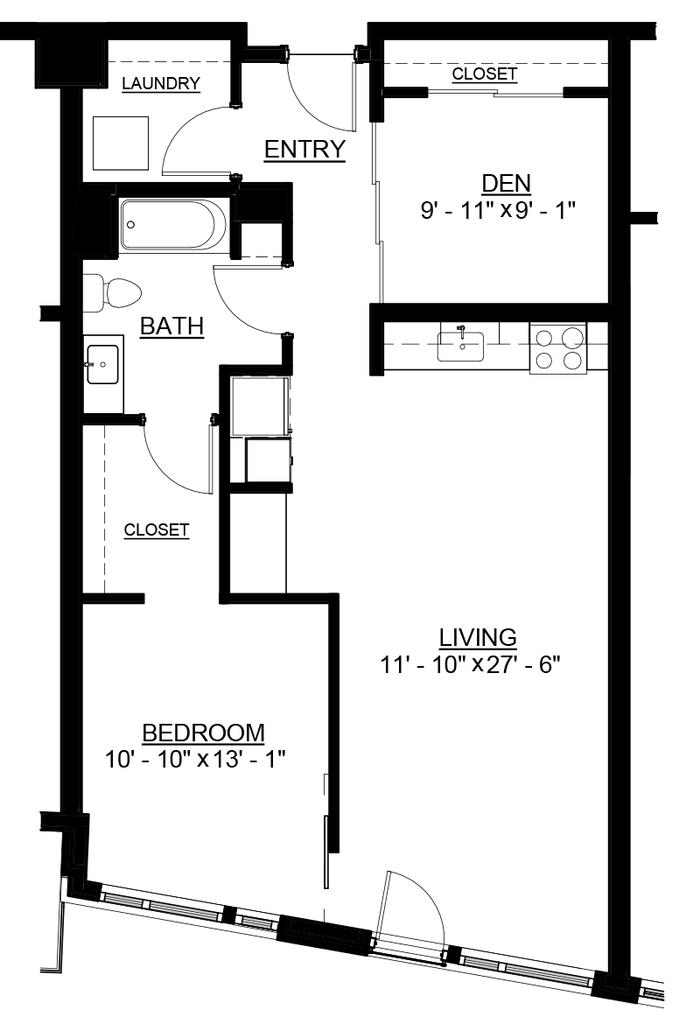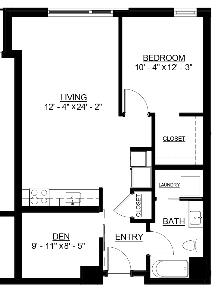 Modelo de apartamento: 1 Bed 1 Bath + Den$3,0991 Dormitorio, 1 Baño, 900 sq ftDisponible Ahora![]()