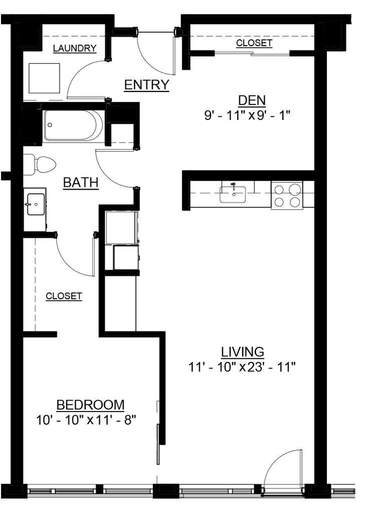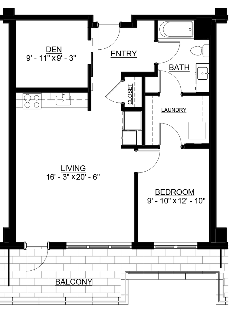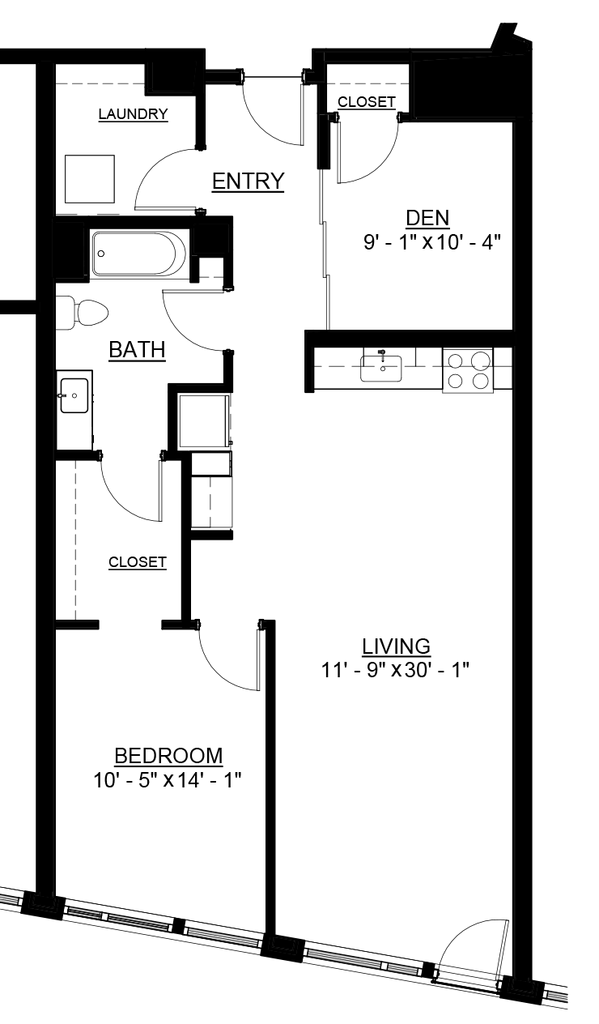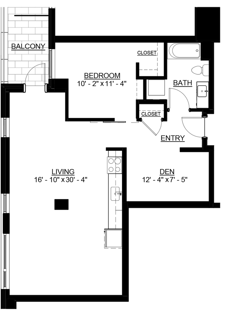 Modelo de apartamento: 1 Bed 1 Bath + Den$3,0991 Dormitorio, 1 Baño, 900 sq ftDisponible Ahora![]()