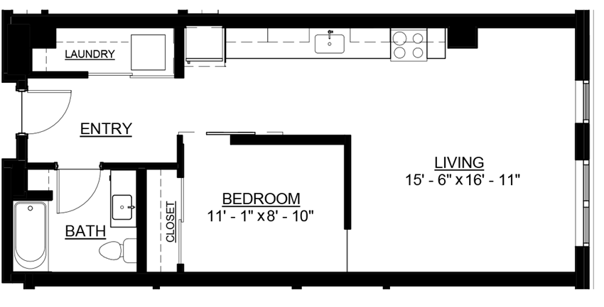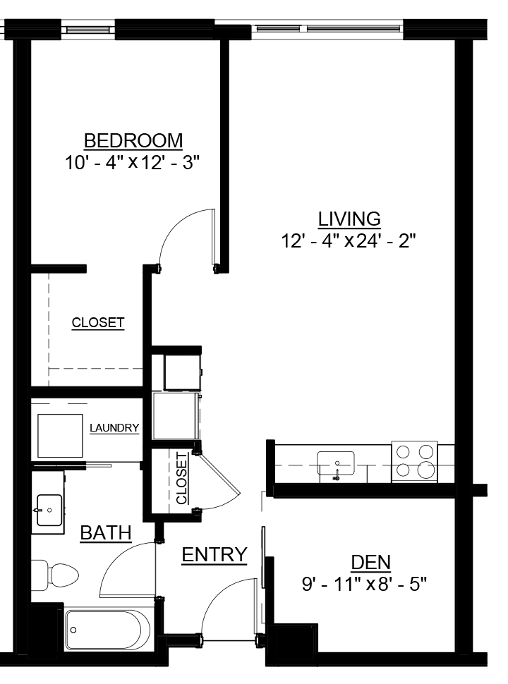 Estudio, 1 Baño, 615 pies²Galería del Modelo