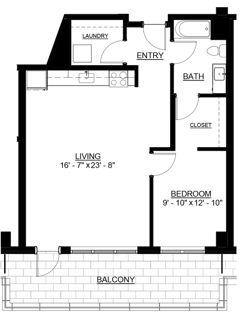Estudio, 1 Baño, 633 pies²El más grandeEsta opción tiene las unidades más grandes para este modeloGalería del Modelo