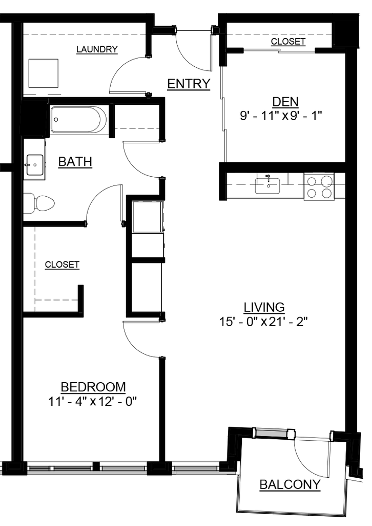 Ver Planos No Disponibles1 Bed 1 Bath + Den