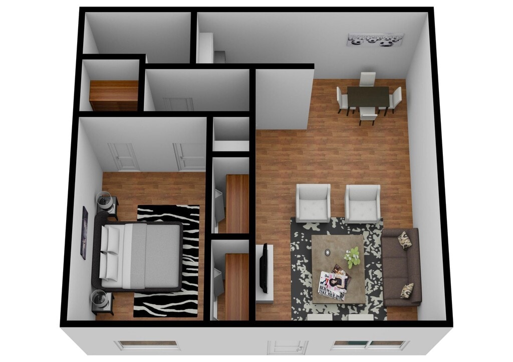 1 Dormitorio, 1 Baño, 576 pies²Disponible AhoraGalería del Modelo