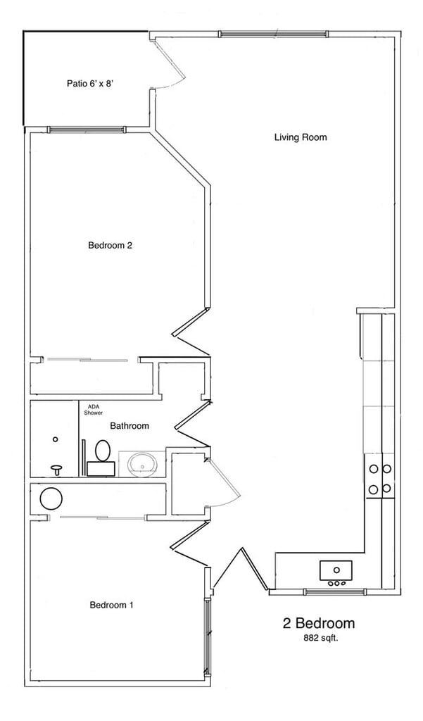 2 Dormitorios, 1 Baño, 888 pies²Precio Mensual TotalDisponible AhoraDetalles de Diponibilidad