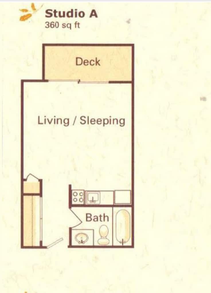 Unidad de apartamento: 54Modelo de apartamento: 0BR/1.0BAEstudio, 1 Baño, 360 sq ftDisponible Ahora![]()