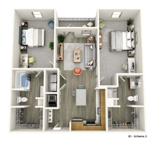 Modelo de apartamento: B1Desde $1,6982 Dormitorios, 2 Baños, 1156 sq ftDisponible AhoraLos planos de la planta son una interpretación artística. Todas las dimensiones son aproximadas. Los tamaños o el detalle del producto real y sus especificaciones pueden variar. No todas las características están disponibles en todos los hogares para rentar. Los precios y la disponibilidad están sujetos a cambios. El alquiler que se muestra es mensual. Se pueden aplicar ciertos cargos, por ejemplo, entrega de paquetes, recolección de basura, agua, servicios, etc. Depositos varian. Consulta a un representante para conocer detalles.