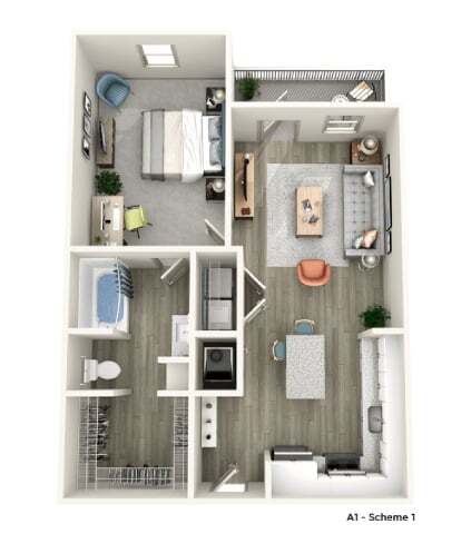 Modelo de apartamento: A1Desde $1,4481 Dormitorio, 1 Baño, 759 sq ftDisponible AhoraLos planos de la planta son una interpretación artística. Todas las dimensiones son aproximadas. Los tamaños o el detalle del producto real y sus especificaciones pueden variar. No todas las características están disponibles en todos los hogares para rentar. Los precios y la disponibilidad están sujetos a cambios. El alquiler que se muestra es mensual. Se pueden aplicar ciertos cargos, por ejemplo, entrega de paquetes, recolección de basura, agua, servicios, etc. Depositos varian. Consulta a un representante para conocer detalles.
