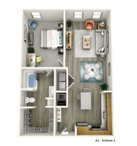 Modelo de apartamento: A2Desde $1,4021 Dormitorio, 1 Baño, 829 sq ftDisponible AhoraLos planos de la planta son una interpretación artística. Todas las dimensiones son aproximadas. Los tamaños o el detalle del producto real y sus especificaciones pueden variar. No todas las características están disponibles en todos los hogares para rentar. Los precios y la disponibilidad están sujetos a cambios. El alquiler que se muestra es mensual. Se pueden aplicar ciertos cargos, por ejemplo, entrega de paquetes, recolección de basura, agua, servicios, etc. Depositos varian. Consulta a un representante para conocer detalles.