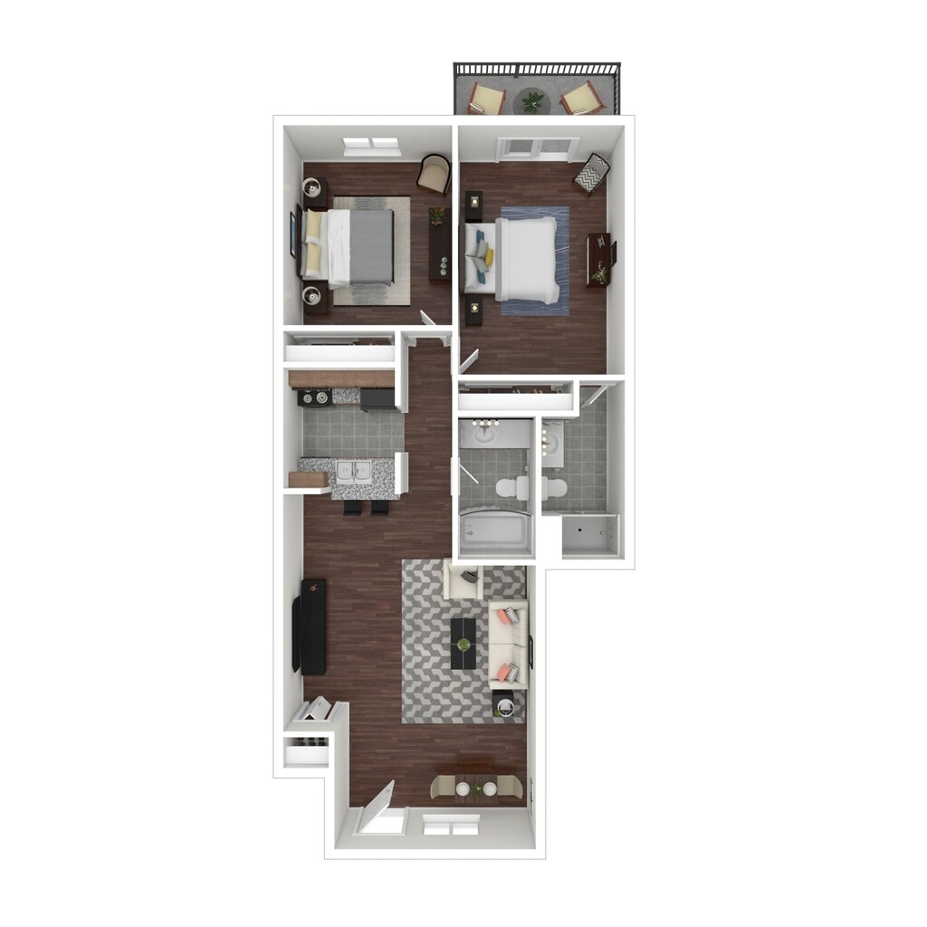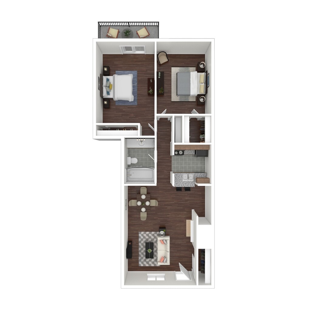 2 Dormitorios, 1 Baño, 800 pies²Disponible AhoraGalería del Modelo