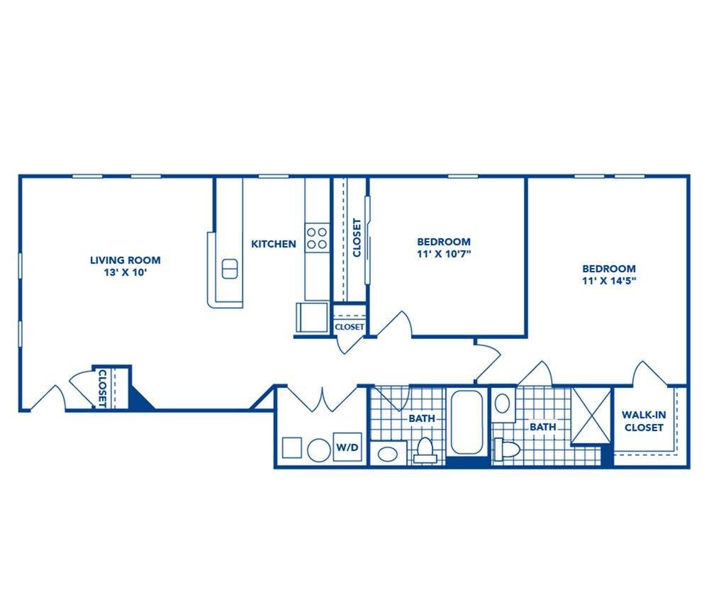 2 Dormitorios, 1 Baño, 1075 pies²Disponible January 9, 2026Galería del Modelo
