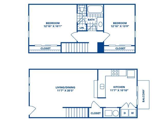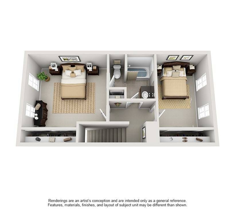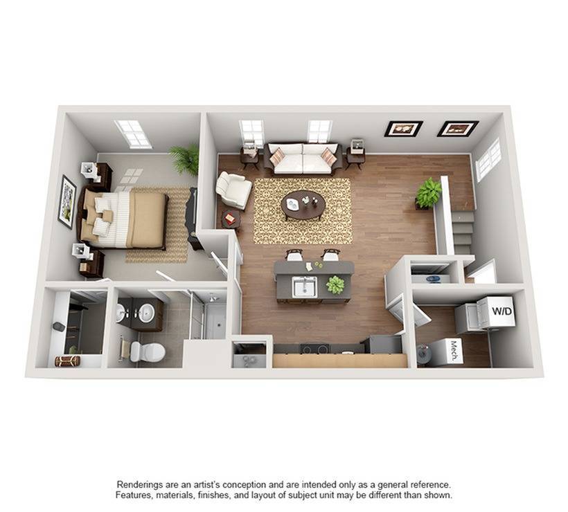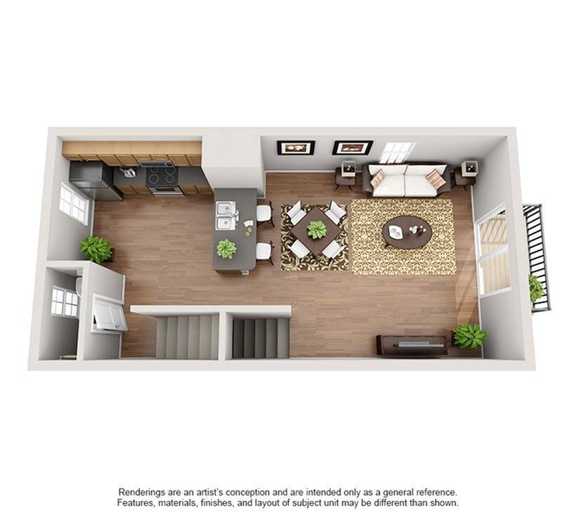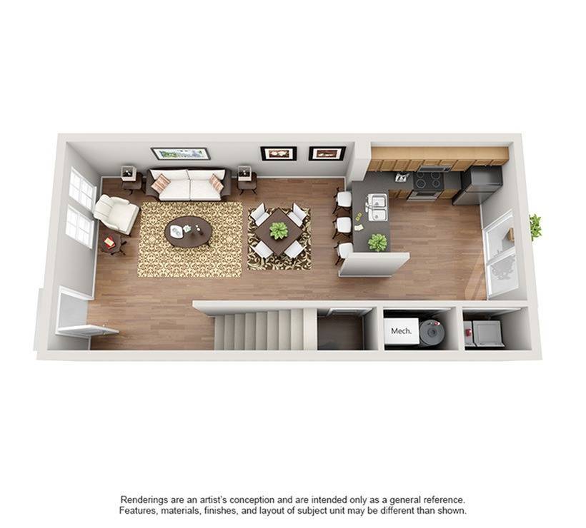 Modelo de apartamento: Bentley Townhome IDesde $1,5851 Dormitorio, 1 Baño, 748 sq ftDisponible Ahora![]()