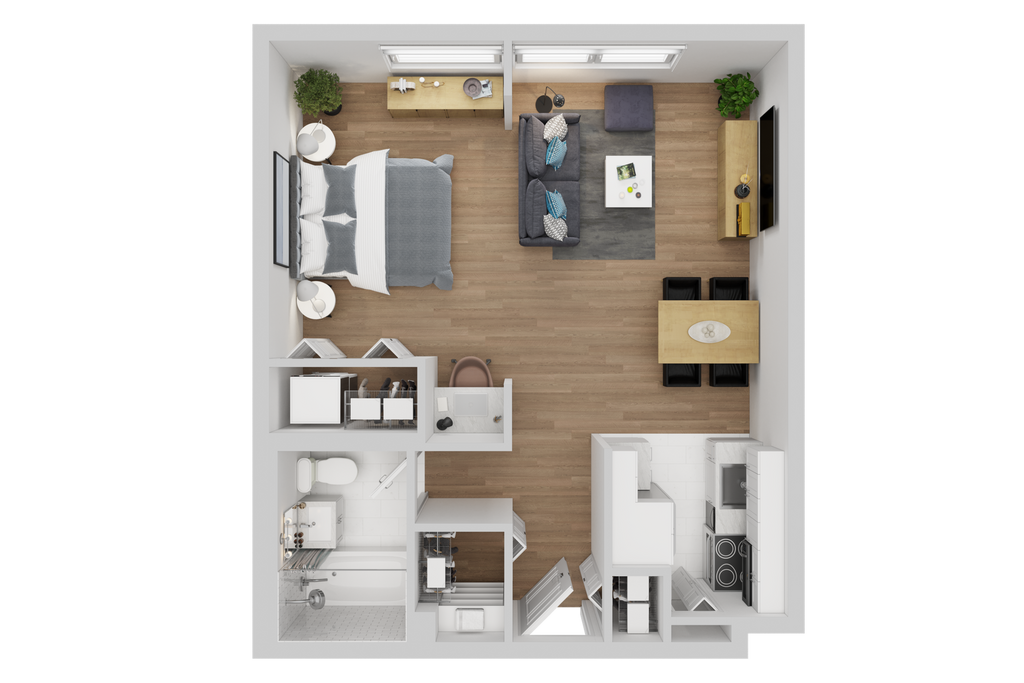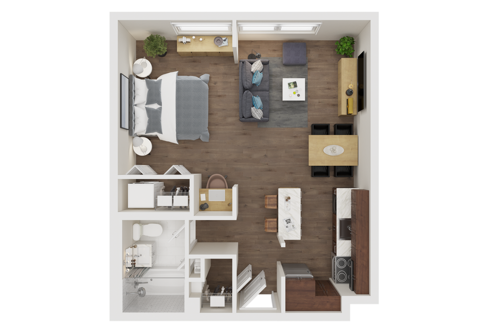 Estudio, 1 Baño, 530 pies²Precio Mensual TotalDisponible AhoraEl más baratoEsta opción tiene los precios más bajos para este modeloGalería del Modelo