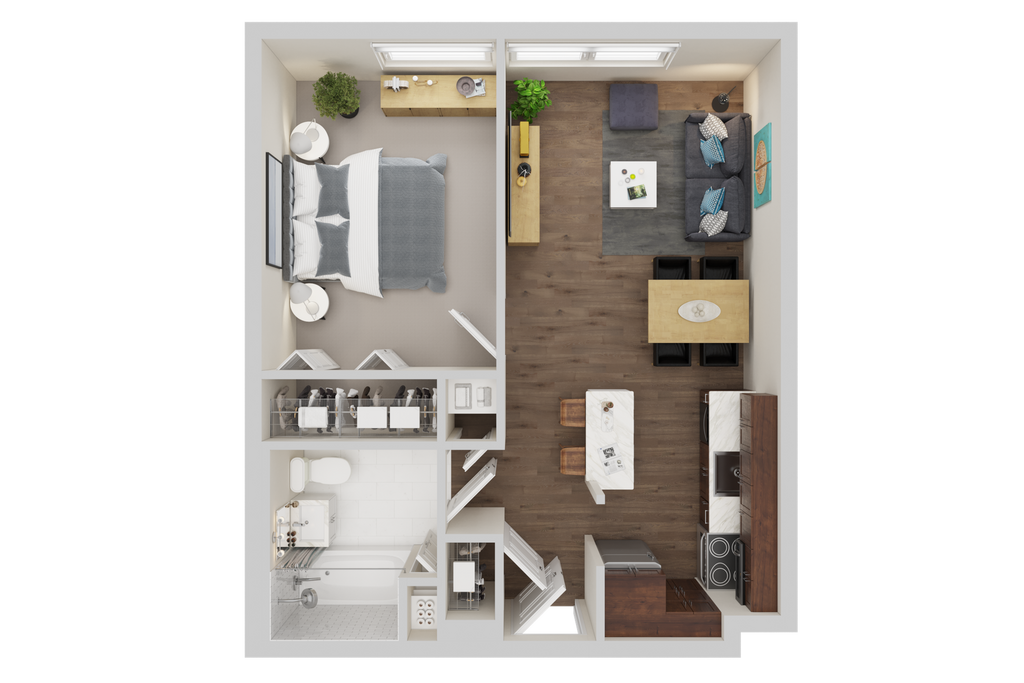 Modelo de apartamento: Minnehaha$1,295Estudio, 1 Baño, 530 sq ftDisponible AhoraPlanosFotos![]()
