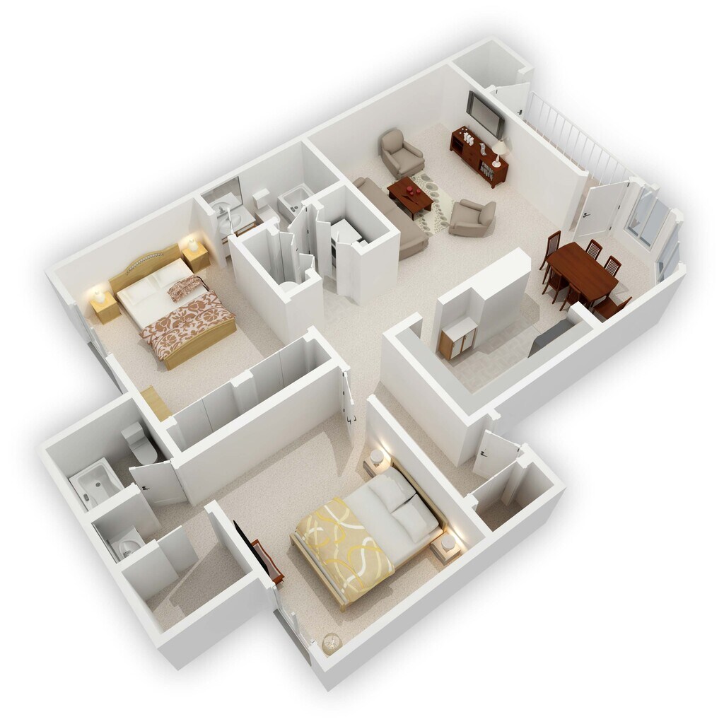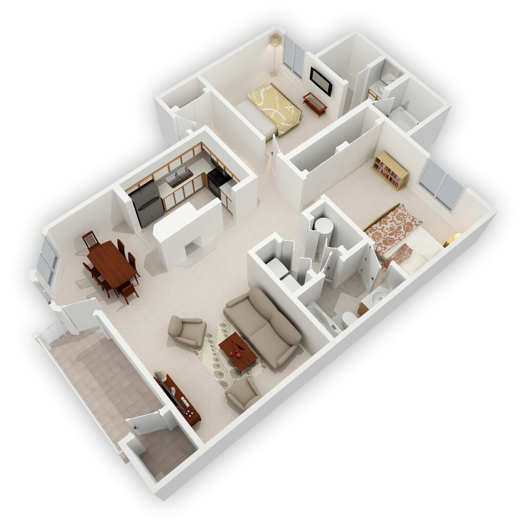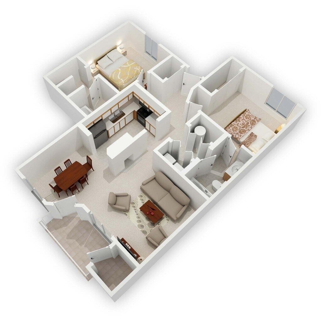 Modelo de apartamento: 2 Bedroom SplitDesde $1,7302 Dormitorios, 2 Baños, 1104 sq ftDisponible Ahora![]()